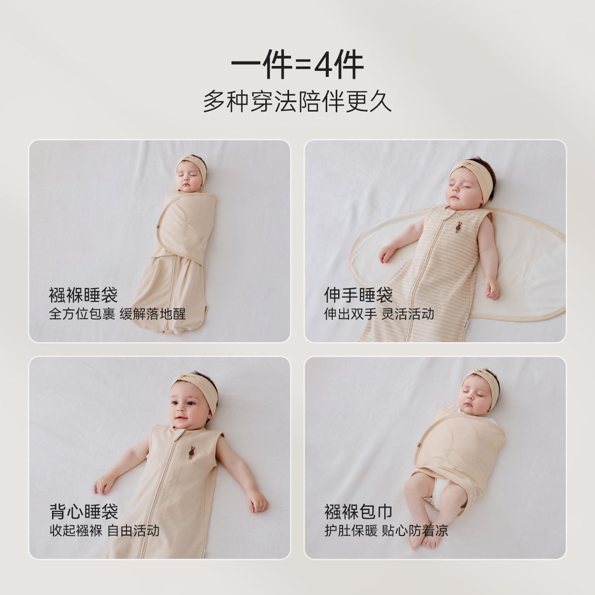 贝肽斯婴儿防惊跳睡袋包巾春秋新生儿襁褓包被宝宝防惊吓睡觉神器