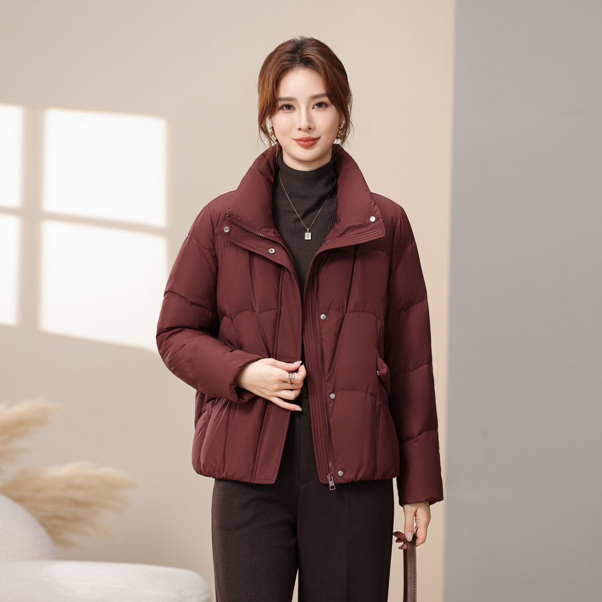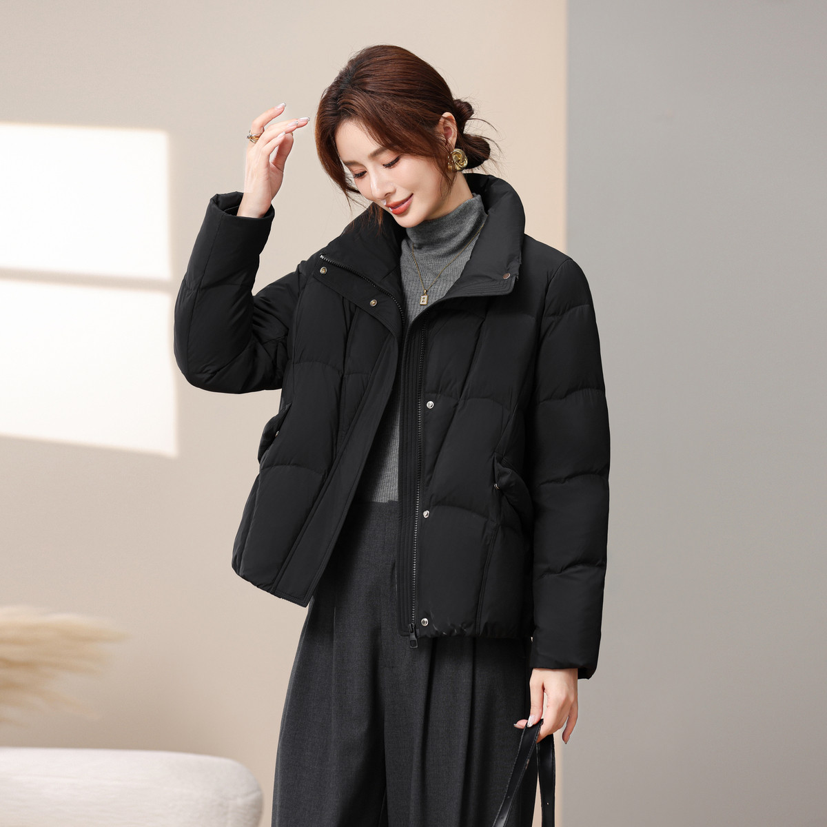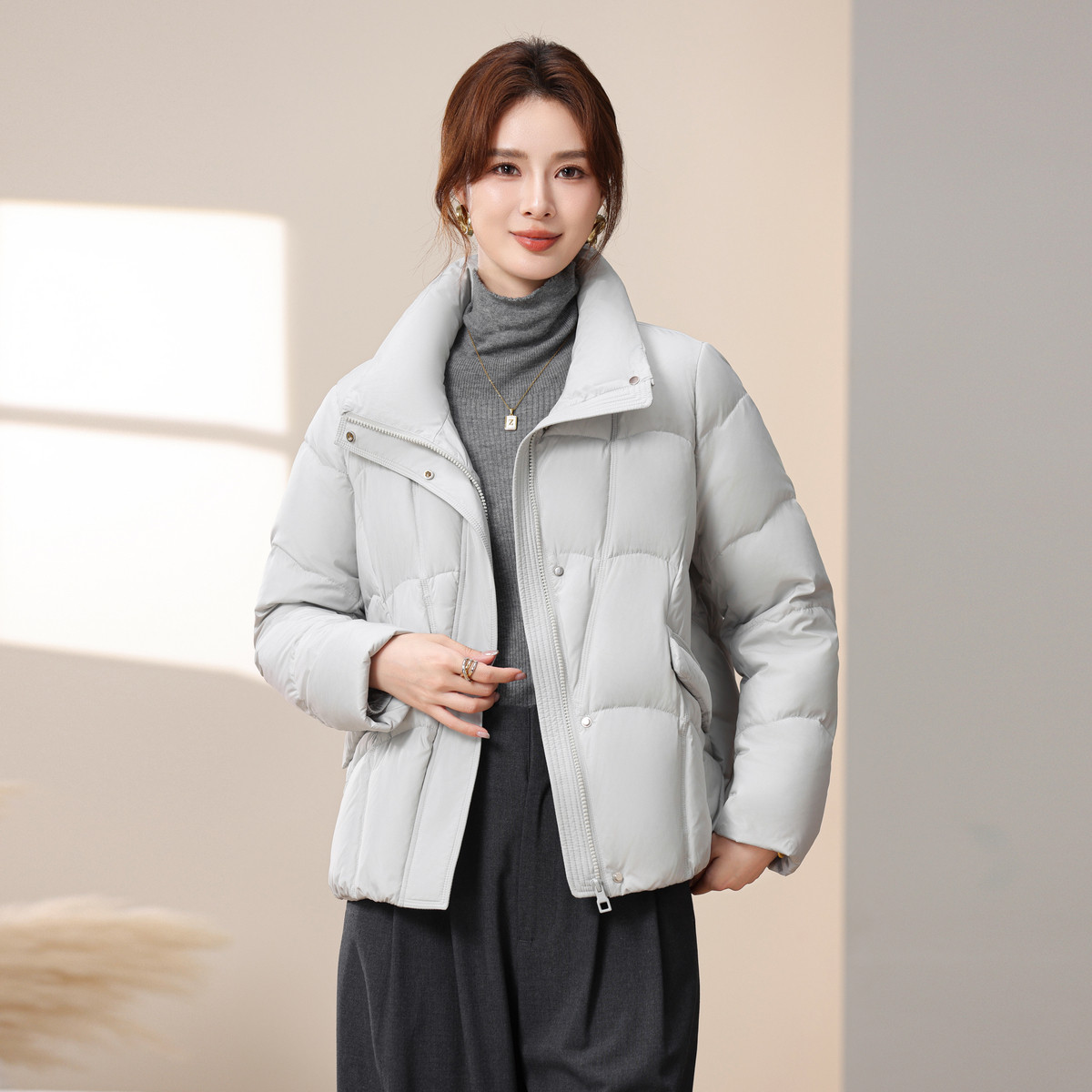 【鞠婧祎同款】鸭鸭2025年冬新款百搭短款女士纯色立领羽绒服外套