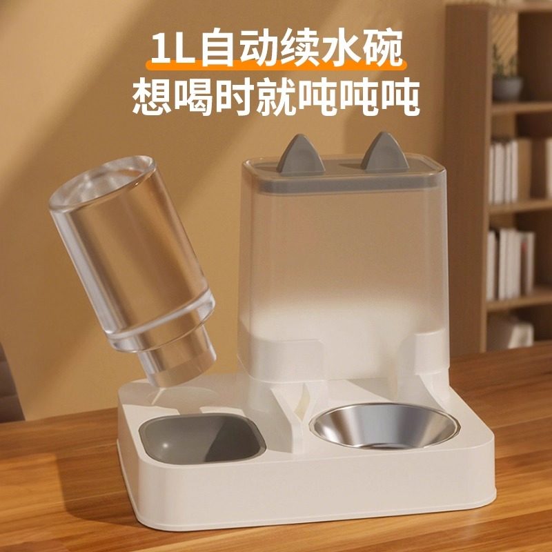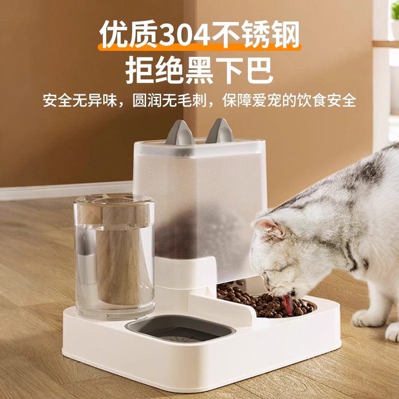 猫碗狗碗不锈钢猫食盆猫咪猫粮自动喂食器饮喂水一体猫盆宠物双碗