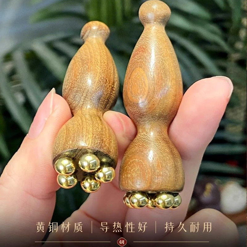 小莲蓬面部按摩器脸部美容镀黄铜刮眼部拨筋棒点穴护肤工具花梨木