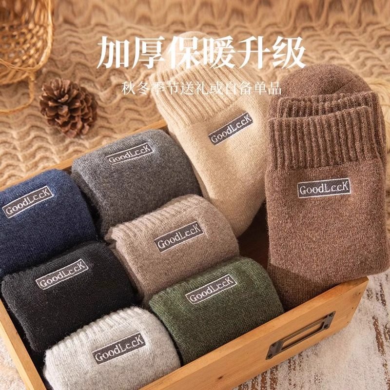 诸暨袜子男士中筒袜秋冬季加绒加厚自然发热保暖毛巾底长筒毛圈袜