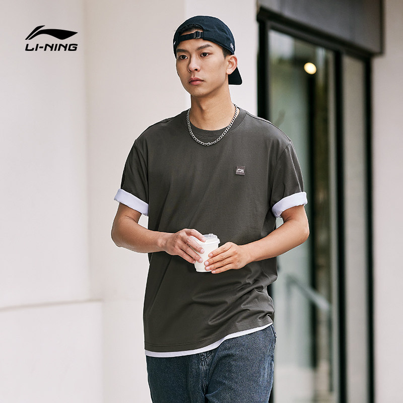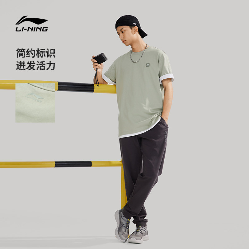 李宁短袖男士官方夏季半袖简约盐系情侣装黑色体恤纯棉运动T恤女