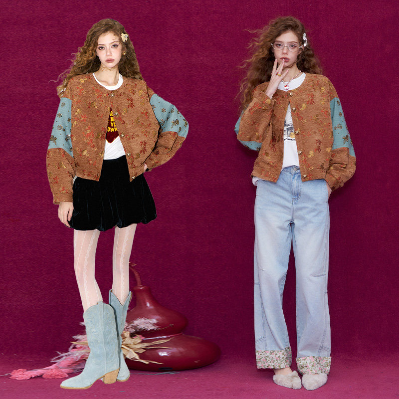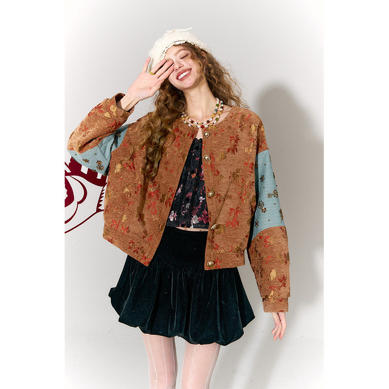 妖精的口袋重工钉珠新中式提花外套女2026冬季新款老钱风新年战袍