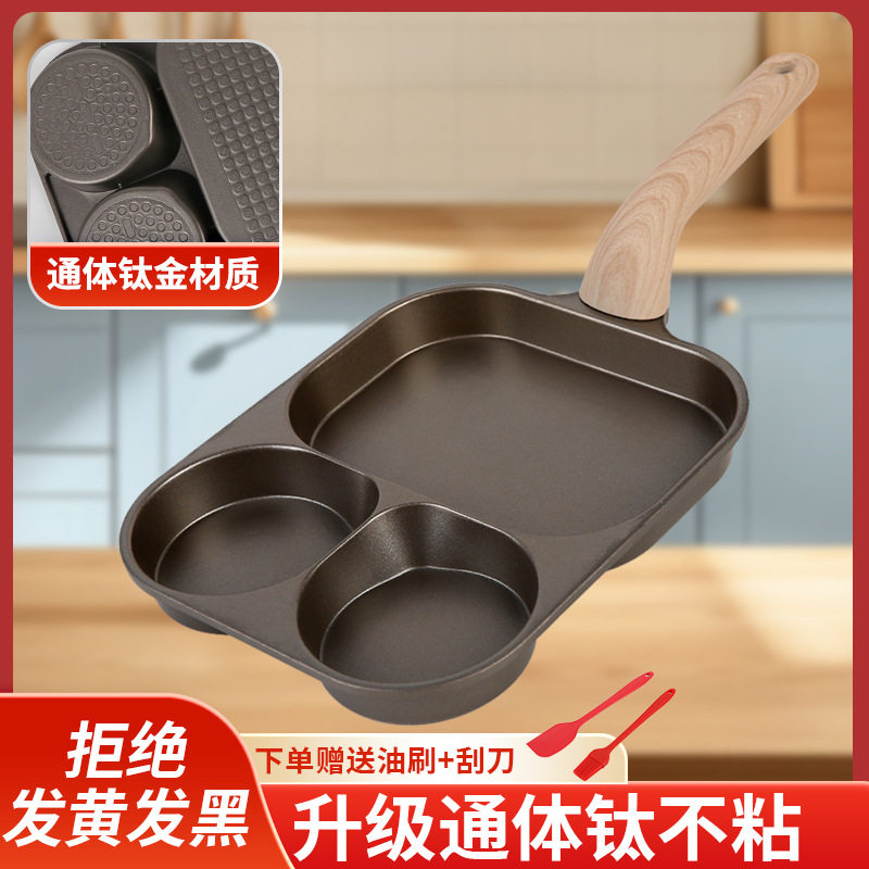 钛陶瓷三合一早餐锅家用平底锅牛排不粘煎锅鸡蛋汉堡锅煎蛋神器