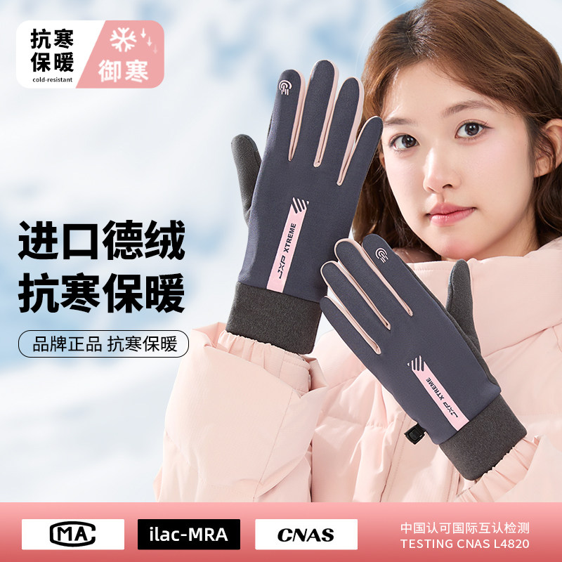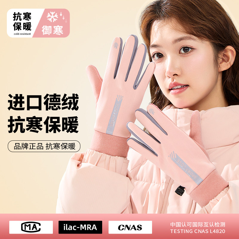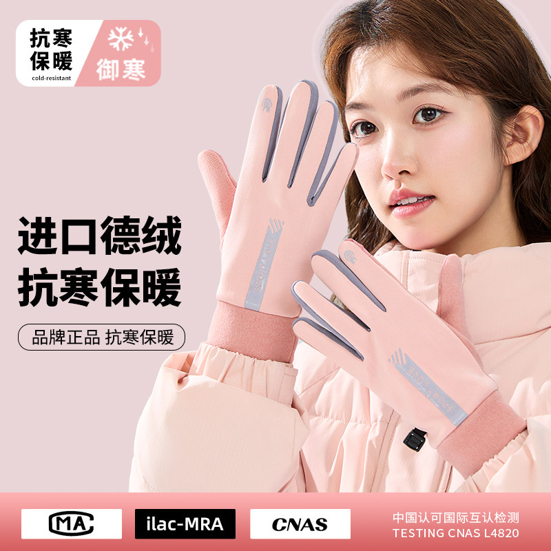 保暖手套女秋冬触屏加厚户外骑行开车德绒防风运动手套防冻男女款
