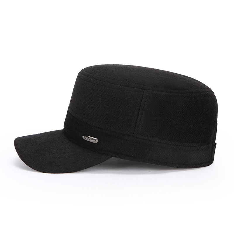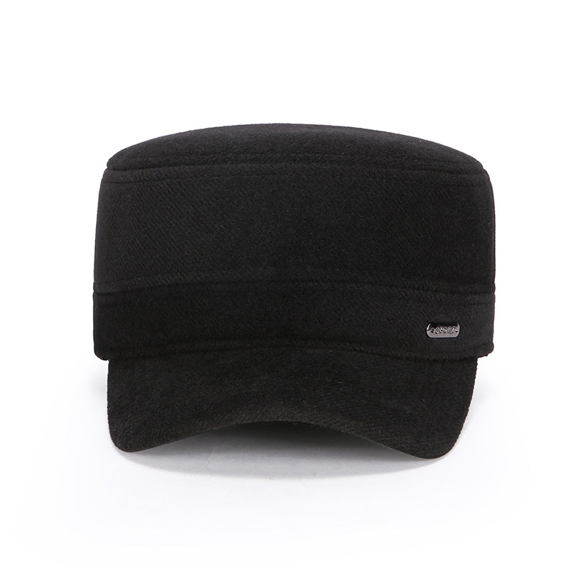 中老年人男士春秋平顶帽爸爸帽子秋冬季保暖访哈老头鸭舌毛呢护耳