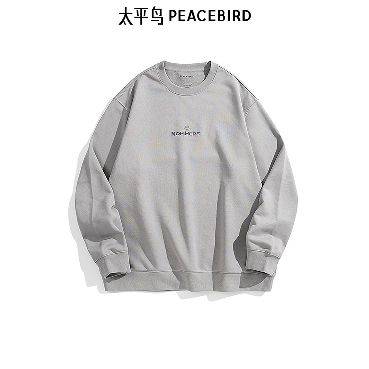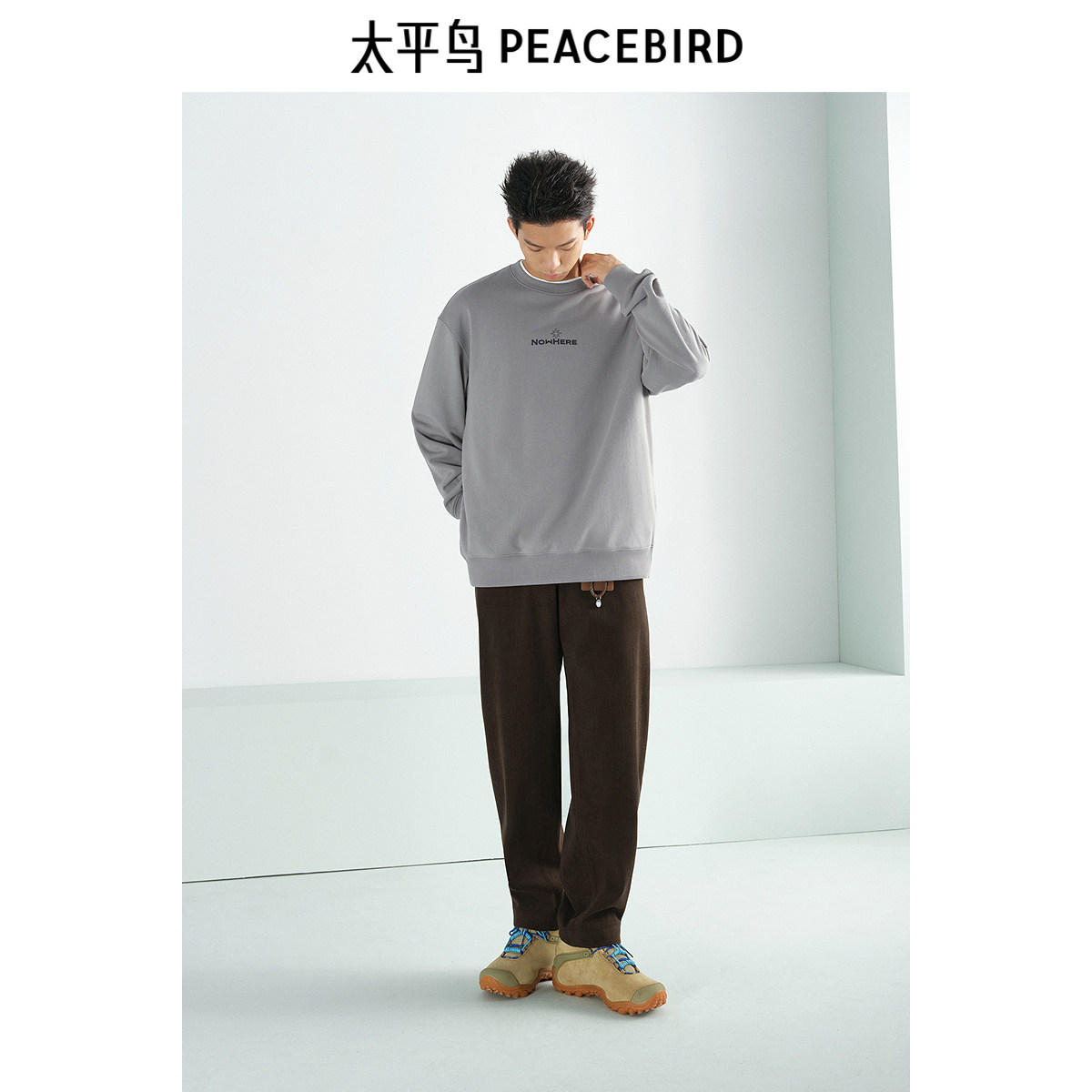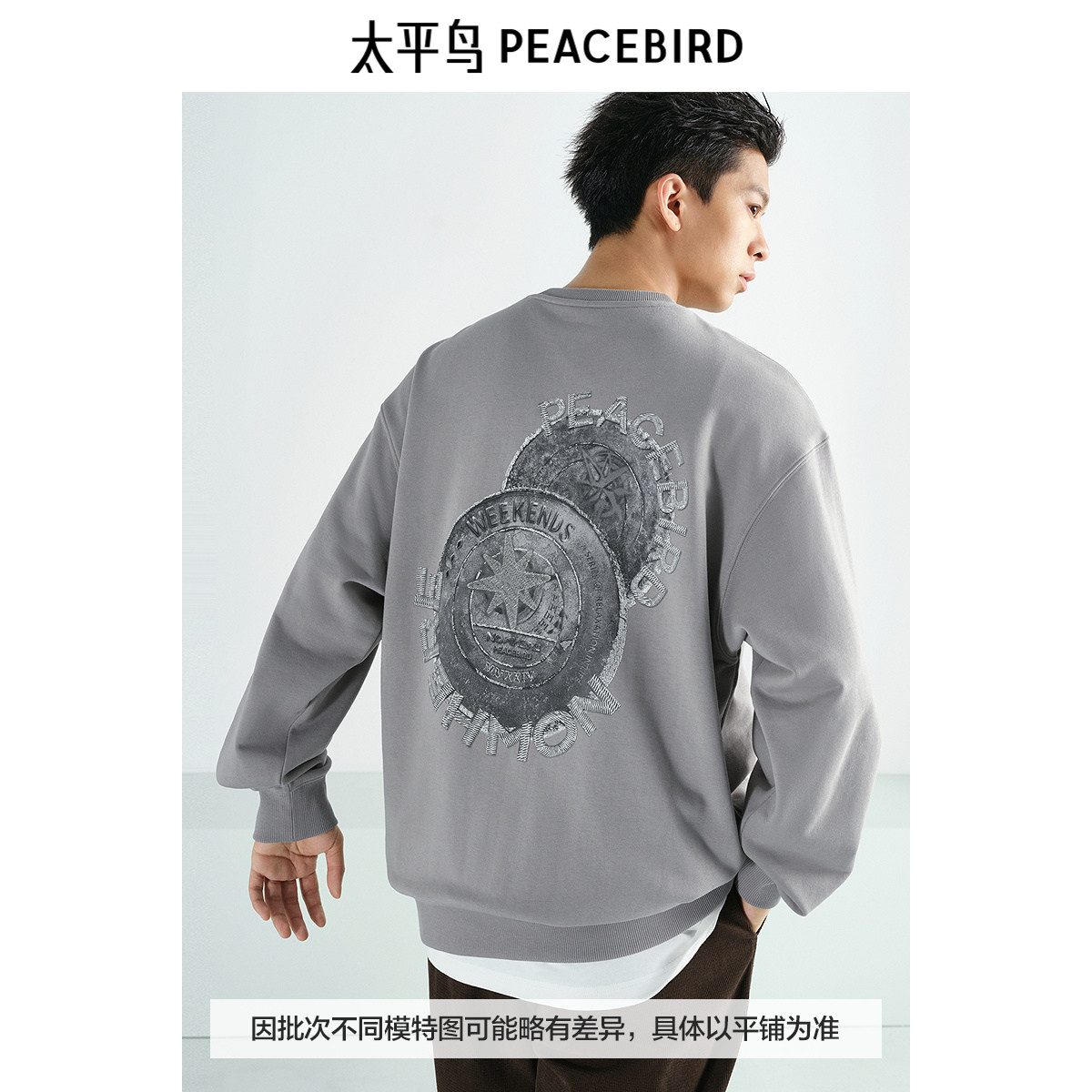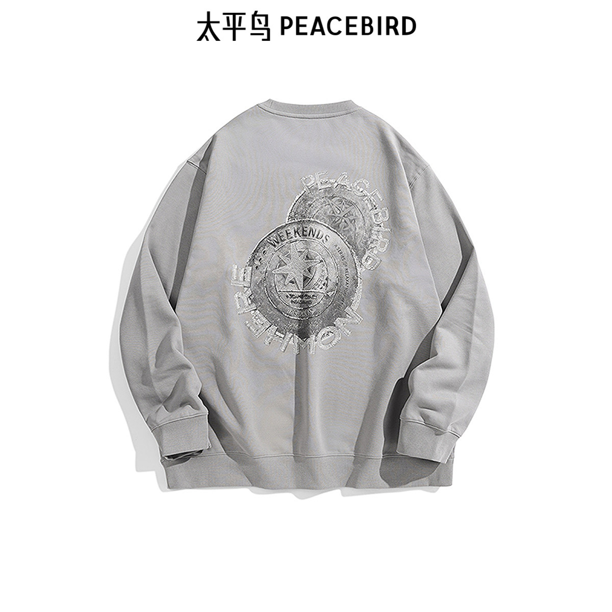 太平鸟男装后背印花毛圈宽松休闲卫衣时尚圆领纯色外套