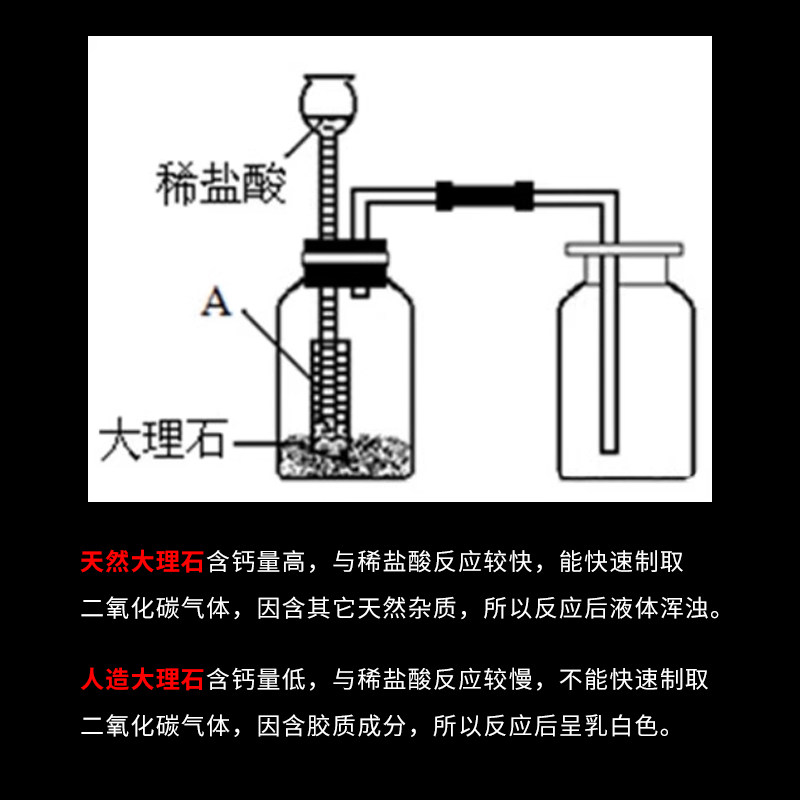 大理石石灰石块状颗粒初中化学实验室制取二氧化碳CO2气体实验用CaCO3碳酸钙100g500g克瓶装袋装教学耗材工具