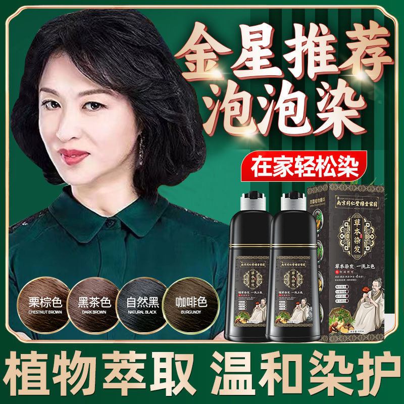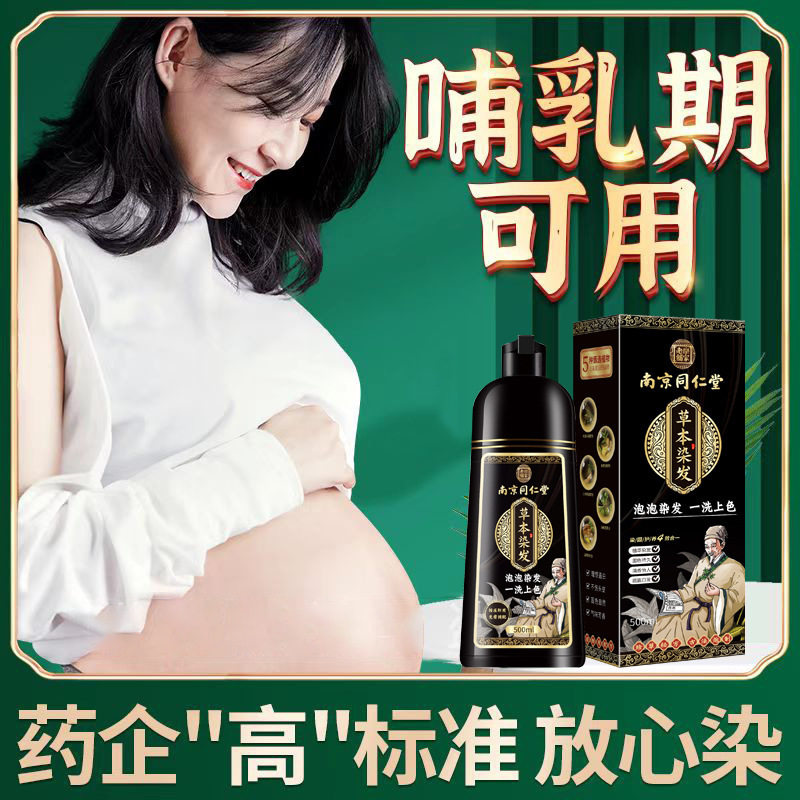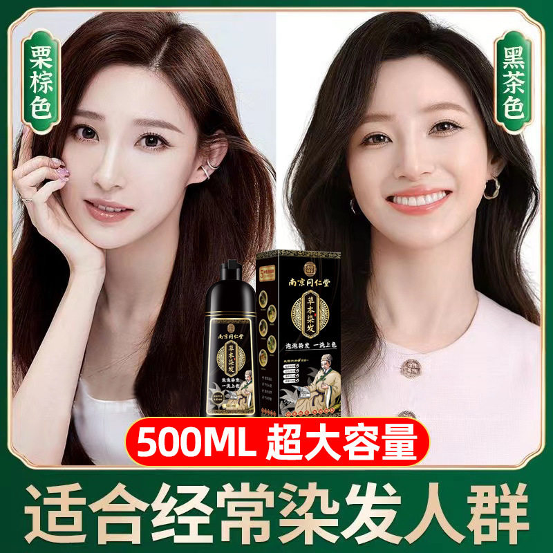 同仁堂植物泡泡染发剂纯染膏男女士专用老年人盖白发正品一洗黑色