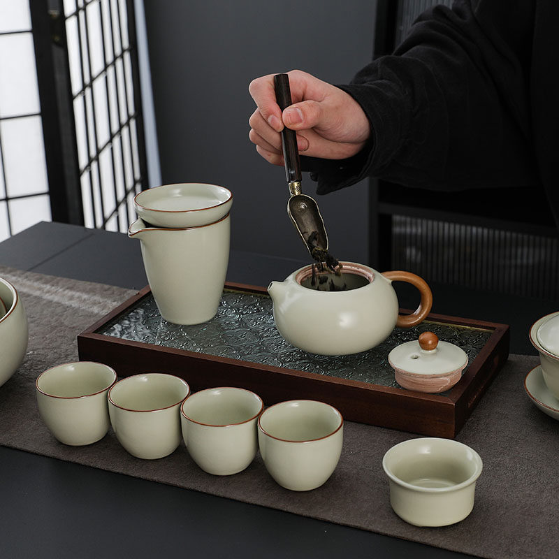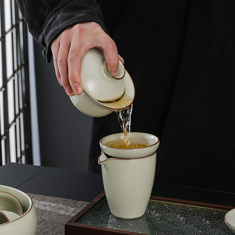 汝窑功夫茶具套装整套家用办公室陶瓷泡茶壶盖碗茶杯高档礼盒汝瓷