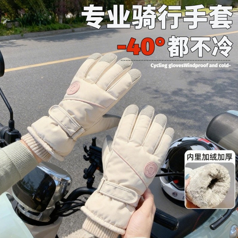 骑行手套男女冬季防风触屏秋冬季电动车服饰加绒保暖防滑骑车滑雪