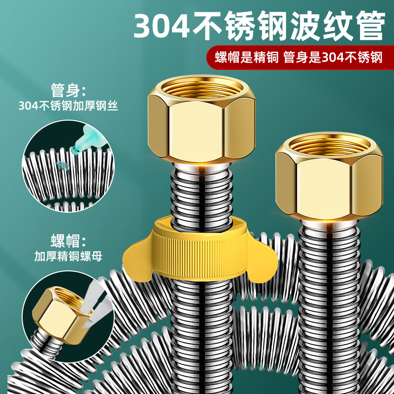 304不锈钢波纹管4分金属防爆软管热水器专用进水管冷热高压连接管