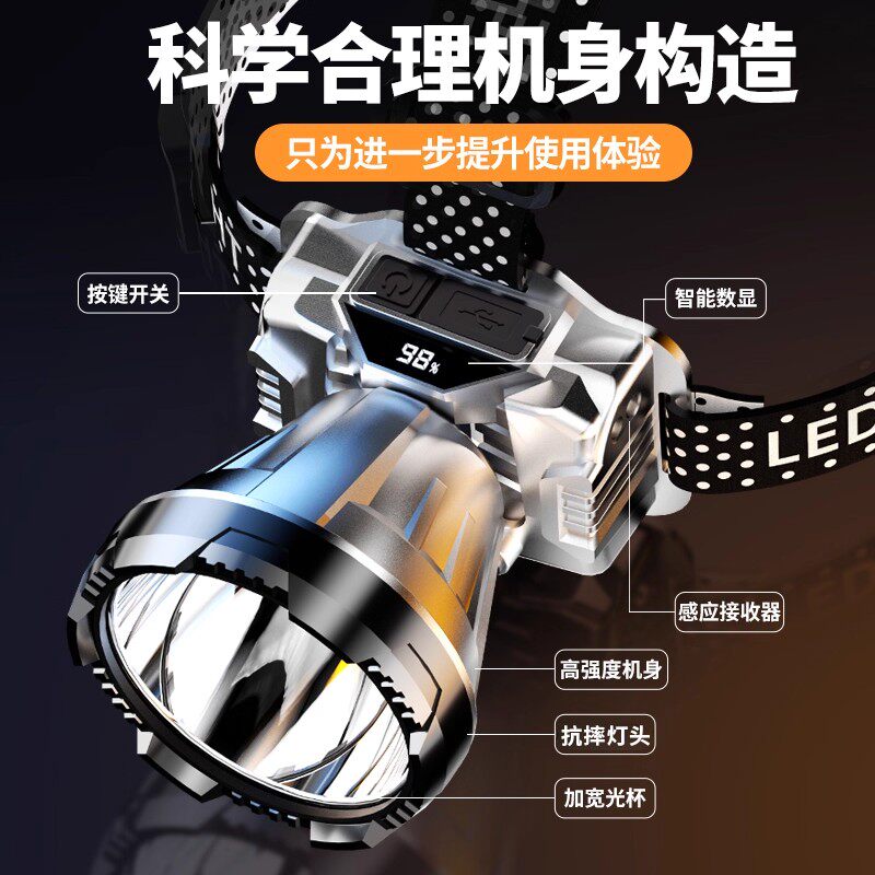 头灯强光充电超亮头戴式照明感应超长续航户外夜钓鱼专用led新款