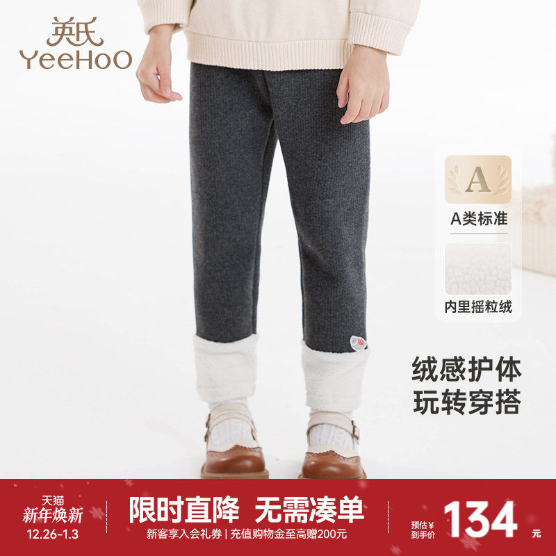 【商场同款】英氏女童打底裤秋冬摇粒绒保暖裤子加绒加厚女宝长裤