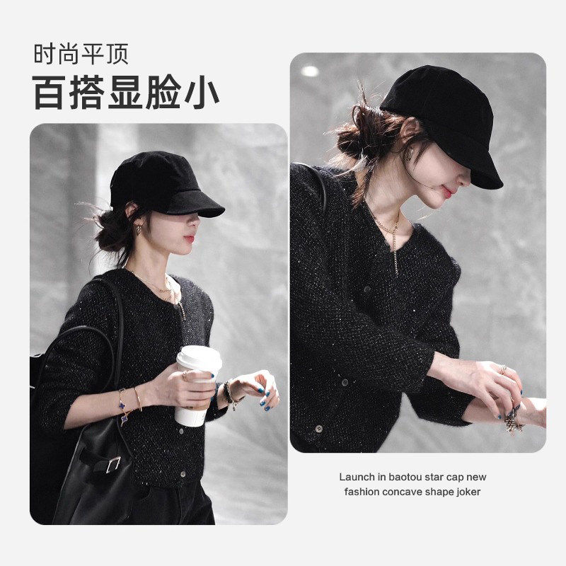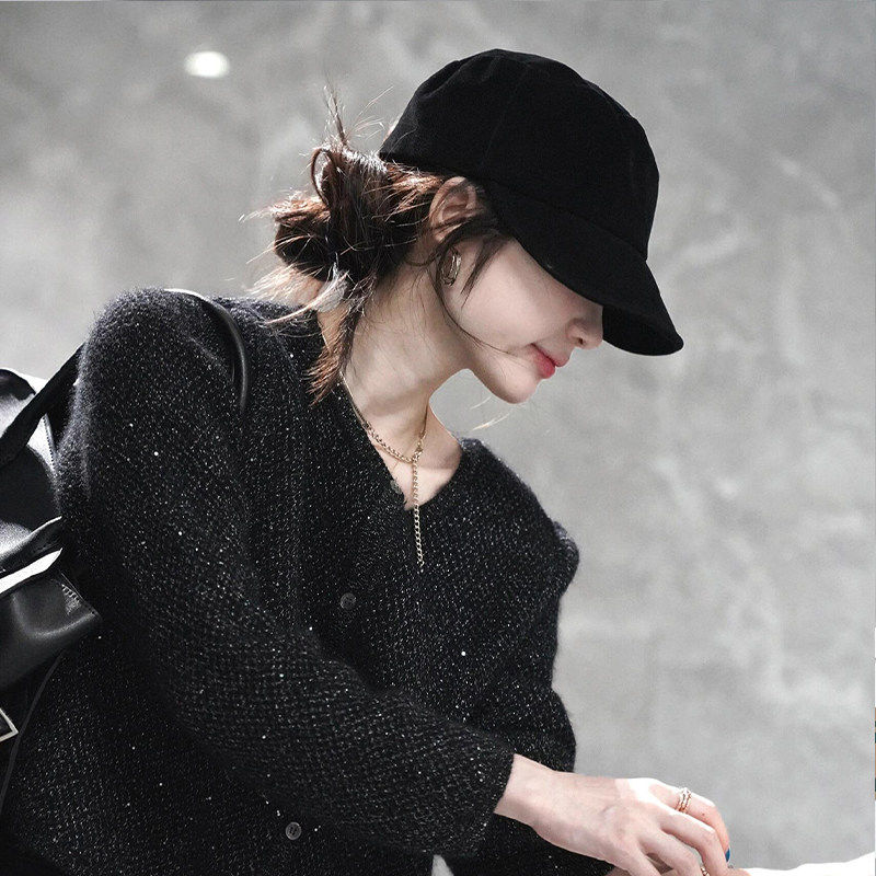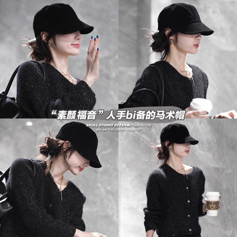 韩版黑色翻毛皮马术帽,素颜遮脸超显脸小