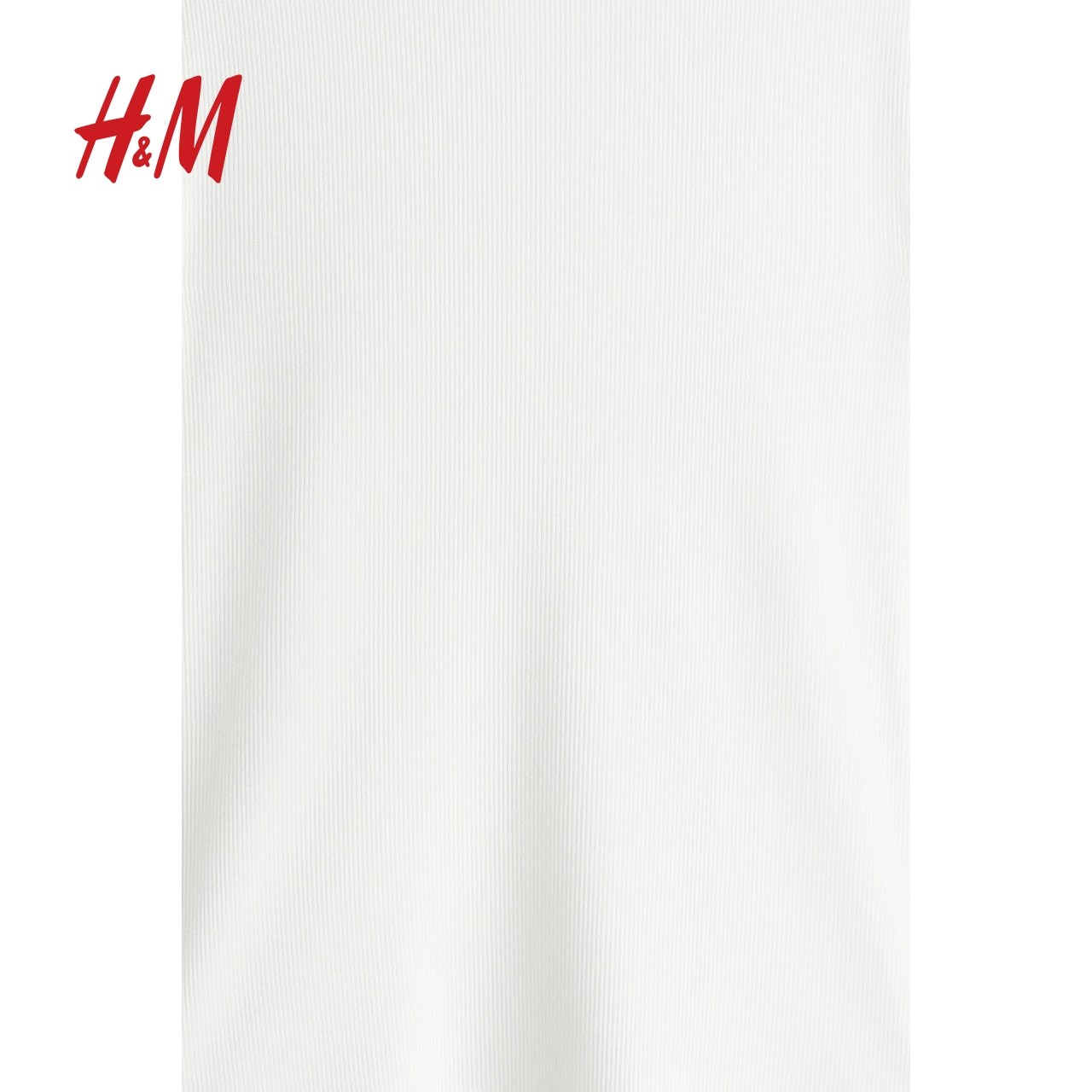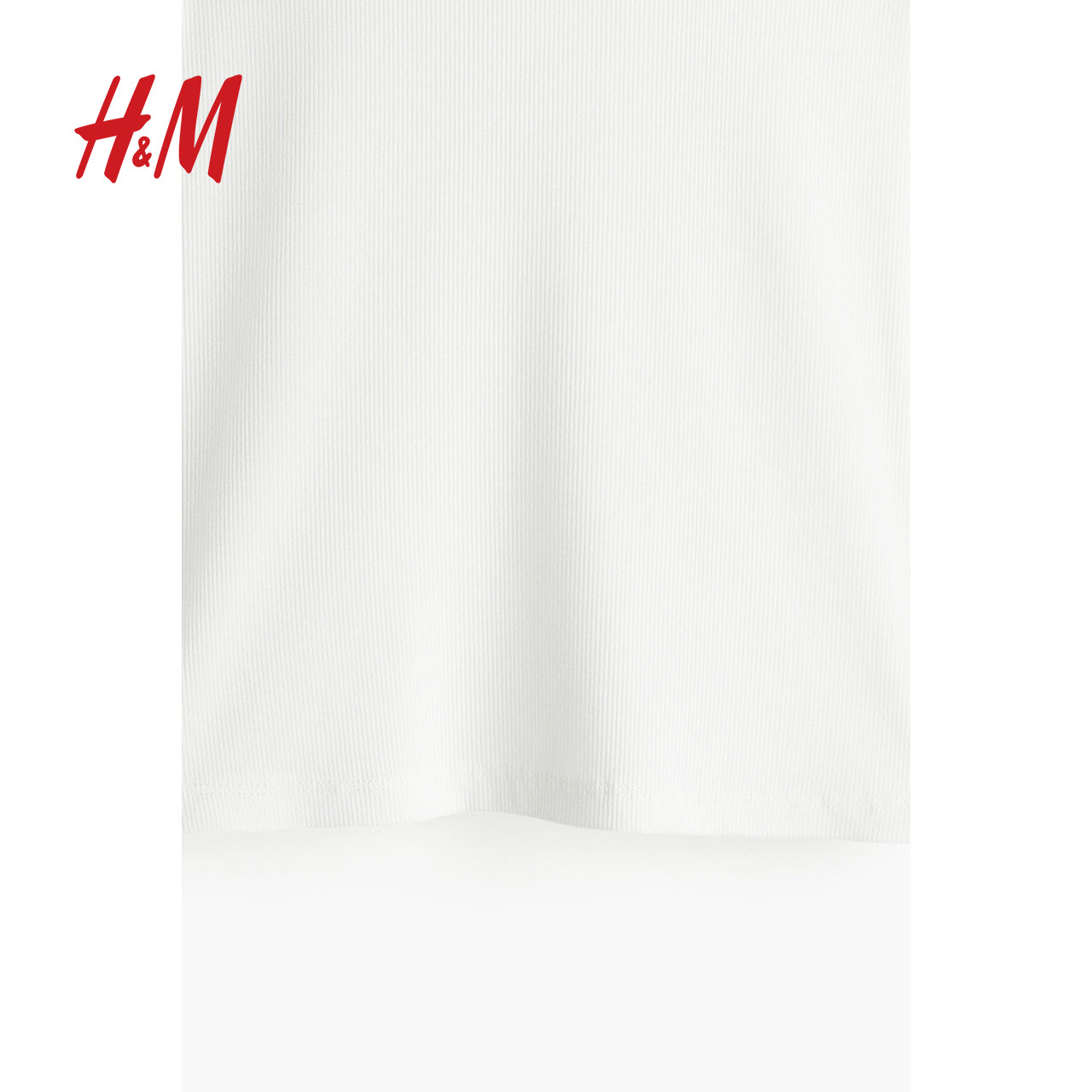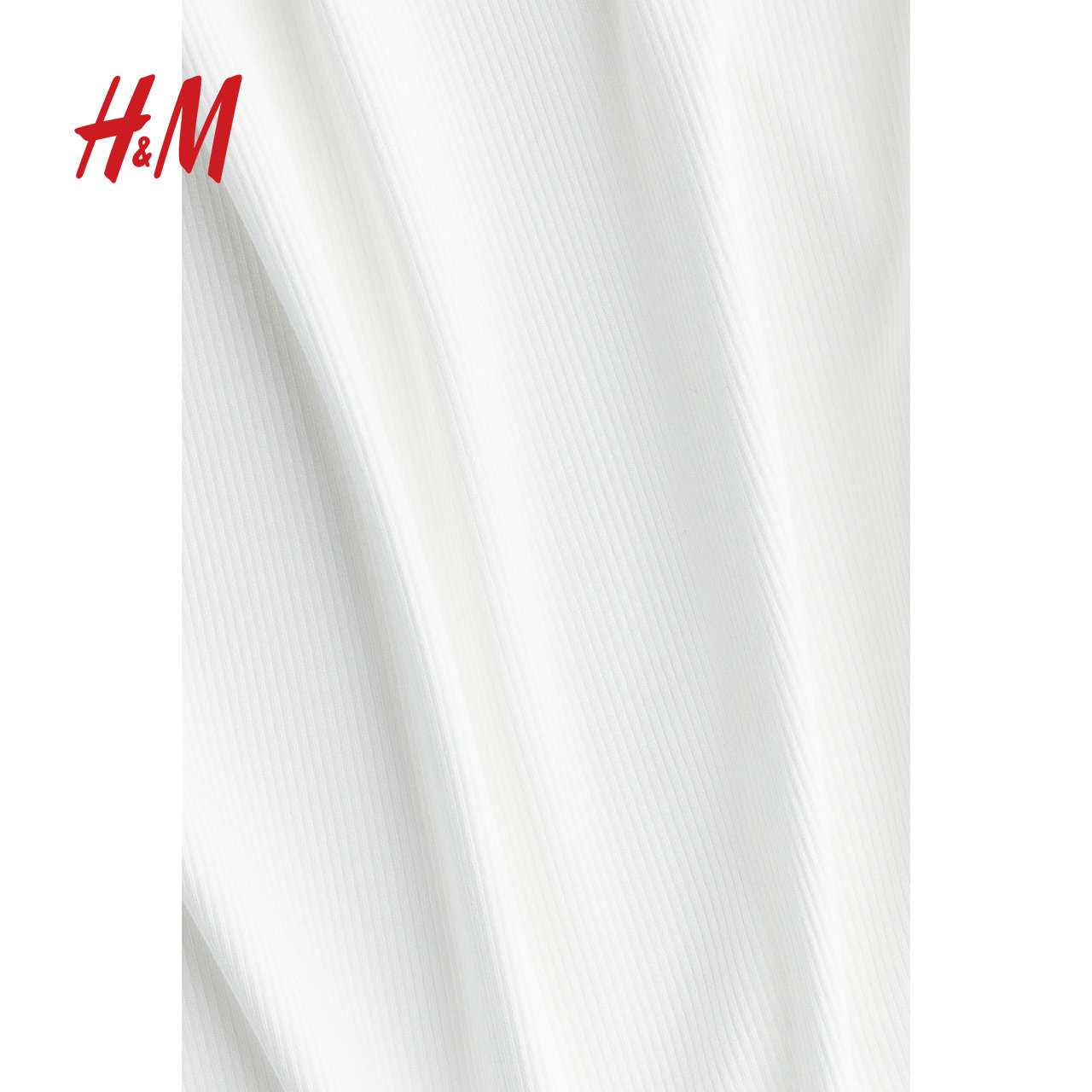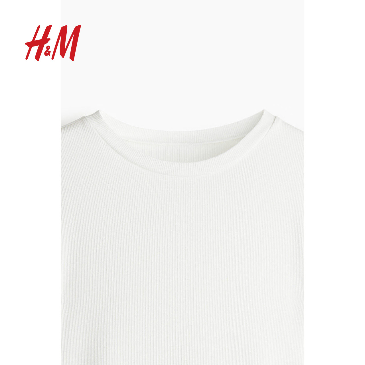HM女装T恤2025冬新款简约修身潮流柔软舒适蕾丝边罗纹T恤1259418