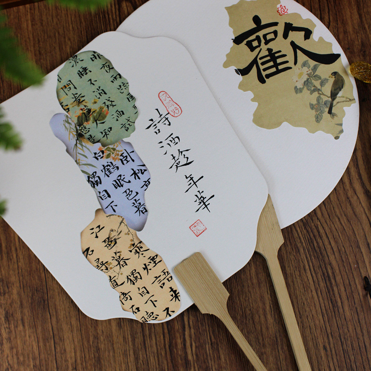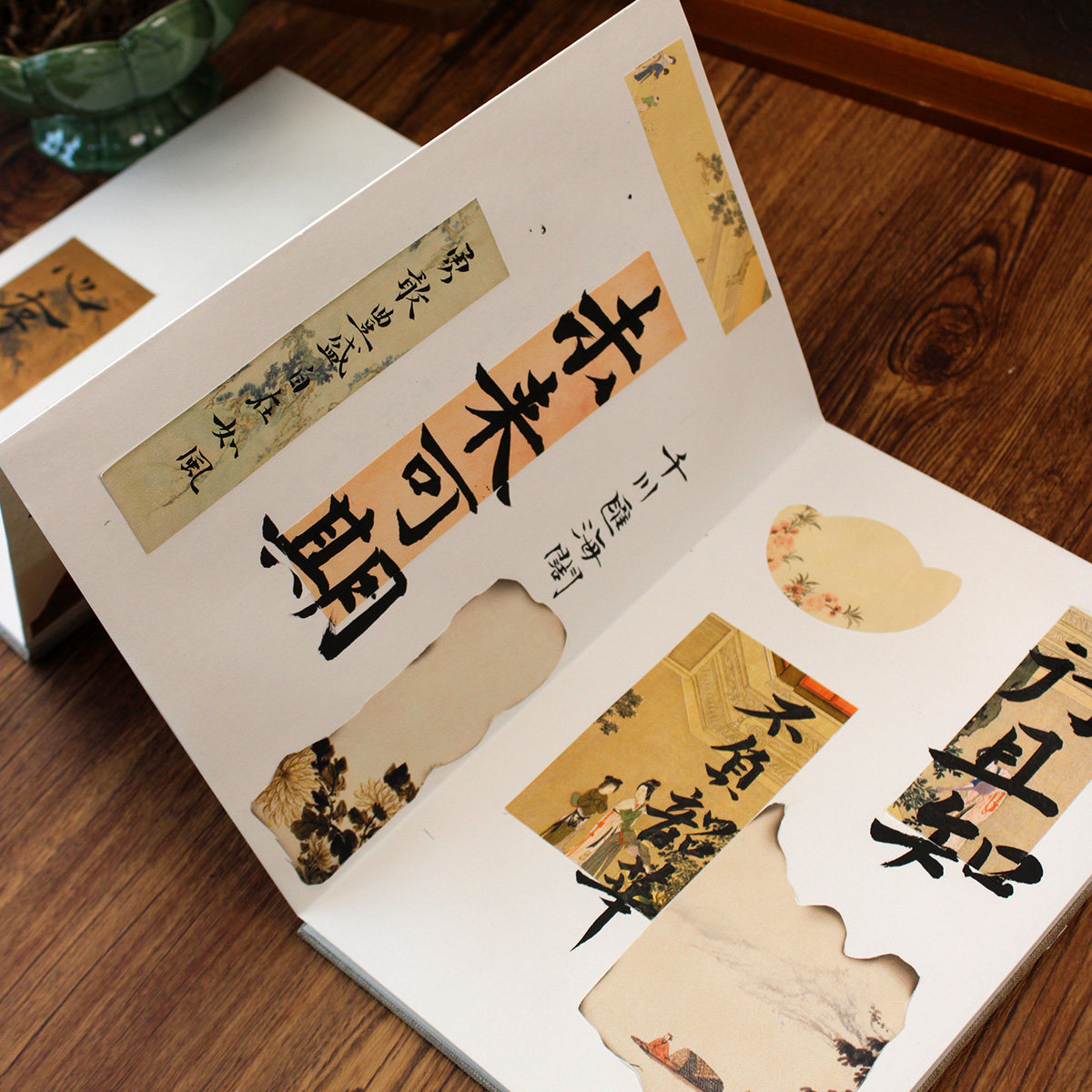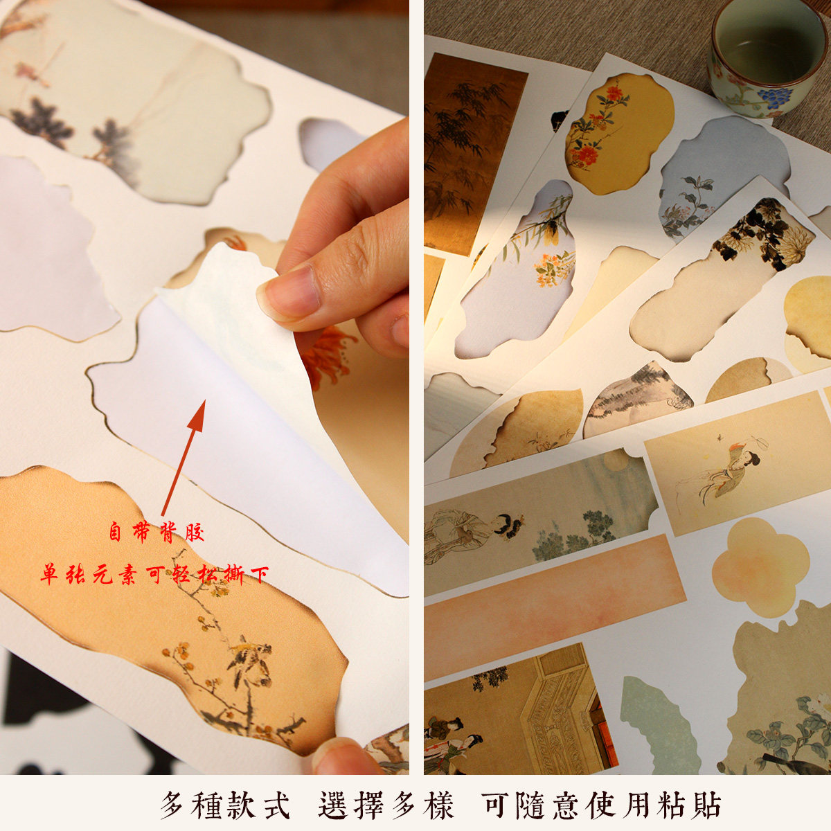 文闱竹宣高级手撕锦灰堆古风异形书法贴纸带胶微喷册页扇子DIY