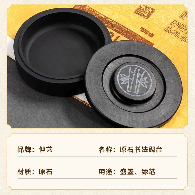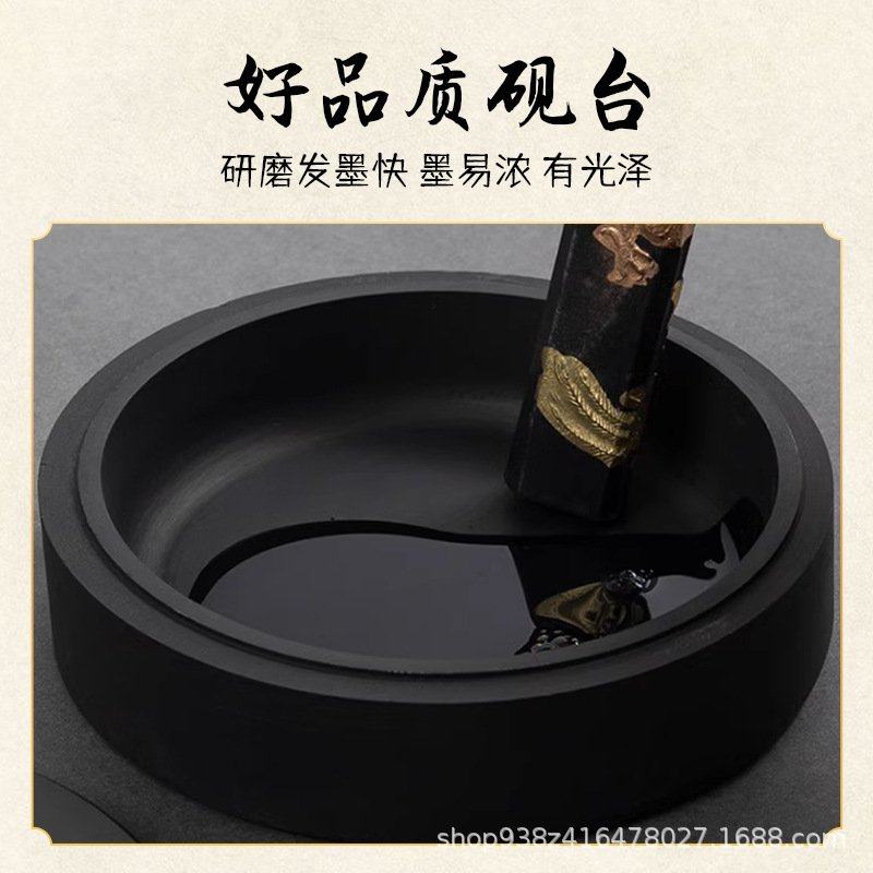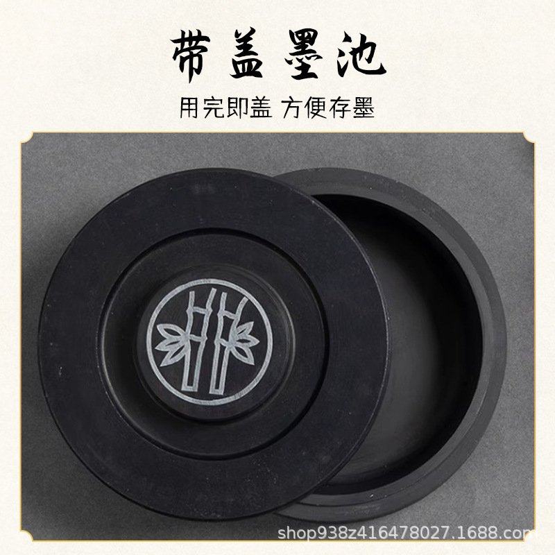 原石带盖罗纹砚台书法墨碟墨盒文房四宝国画墨条端砚研磨火锅宣纸