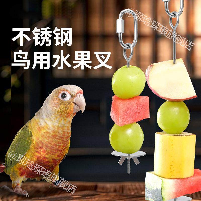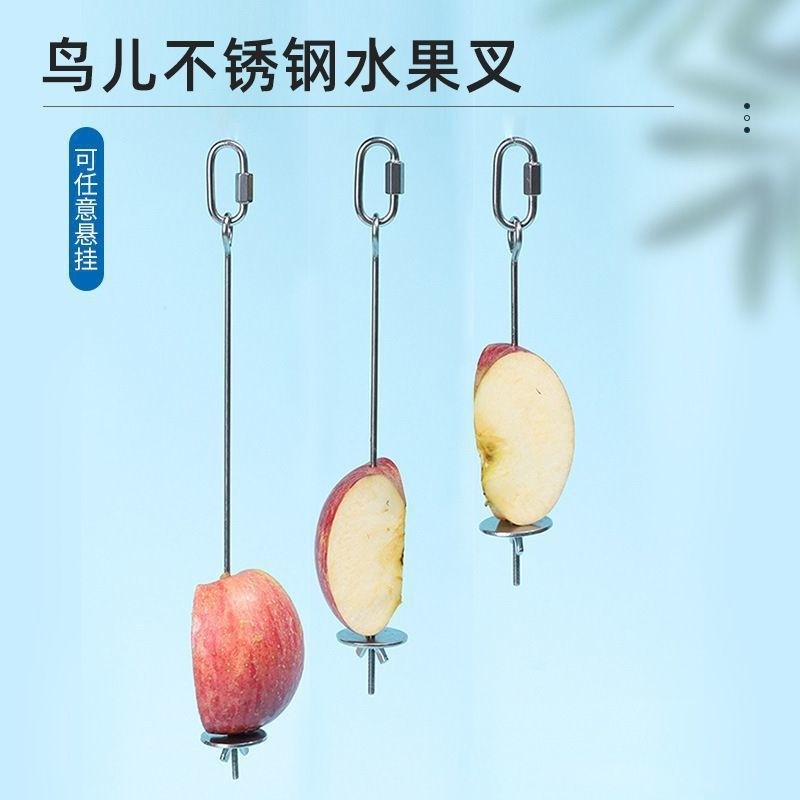 鸟用不锈钢水果蔬菜叉喂食器不锈钢水果叉鹦鹉小太阳大号鸟笼配件