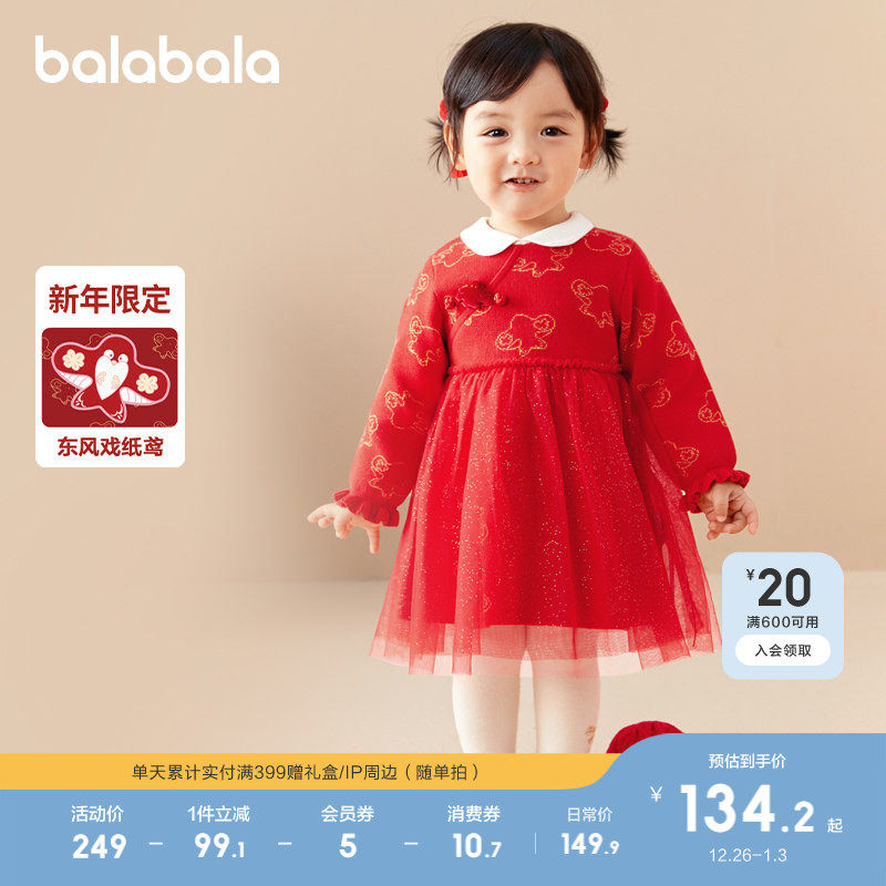 巴拉巴拉童装婴儿连衣裙儿童裙子春秋装女童宝宝公主裙国风可爱潮