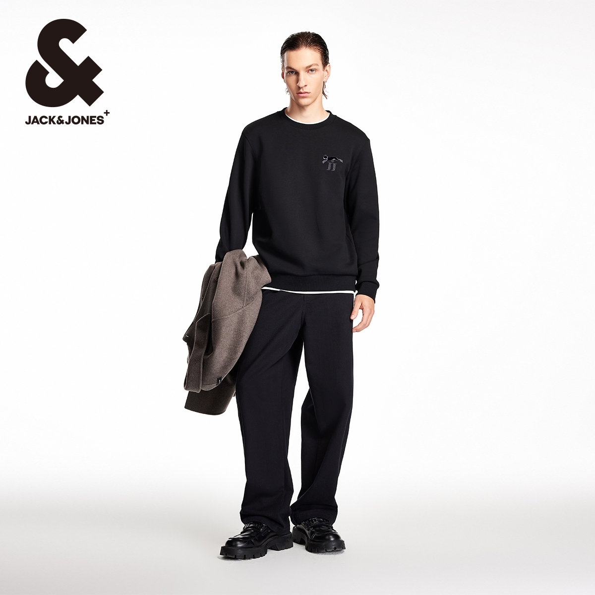杰克琼斯男装新法斗狗刺绣贴布潮流基础百搭舒适圆领长袖卫衣秋冬