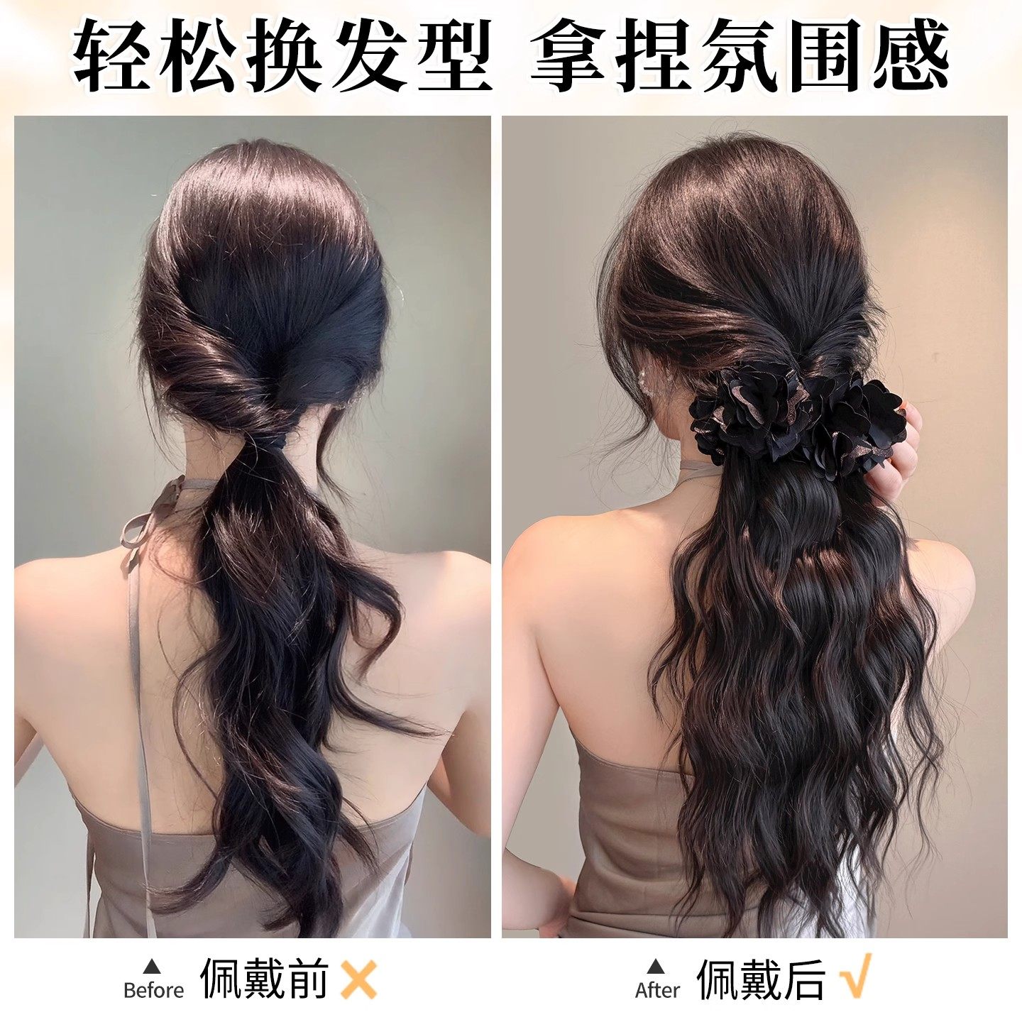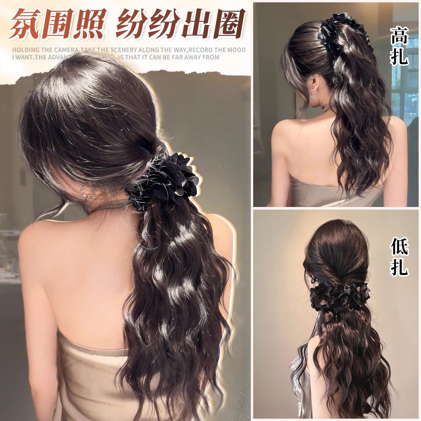 香蕉夹卷马尾假发女易梦玲同款玫瑰水波纹抓夹仿真发增发量长辫子