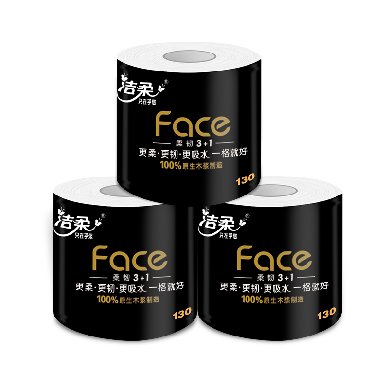 洁柔黑face卷纸加厚4层130g卷柔韧顺滑卫生纸家用厕纸手纸可冲散