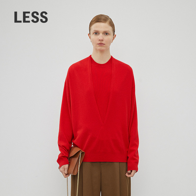 【LESSxSamuel】冬季复古红色简约宽松羊绒衫套装女2NBH21750