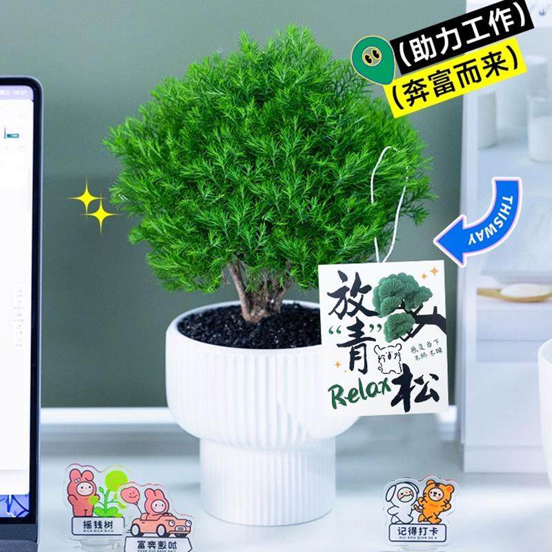 盆栽放青松植物办公室内桌面工位绿植摆件四季常青好养小盆景客厅