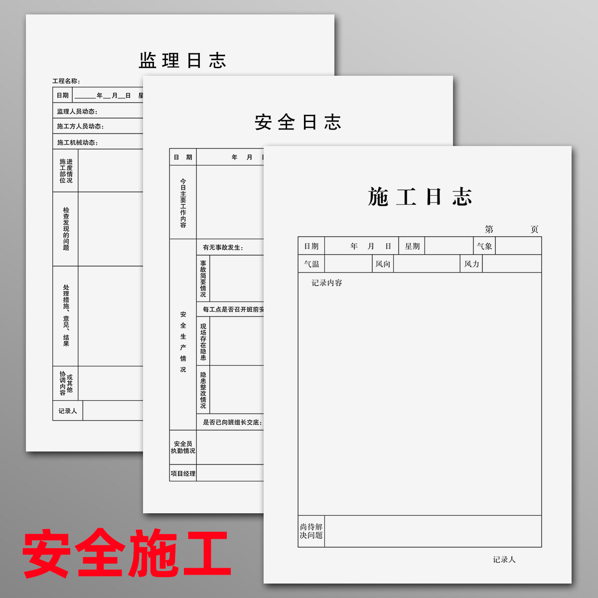 10本施工日志记录本建筑工程施工日记本a4单面双面安全监理施工进度装修手册16k通用彩加厚可定制订做logo