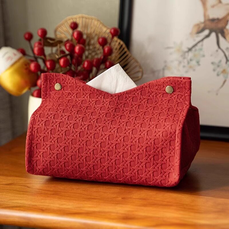 喜庆红色抽纸盒结婚摆件纸巾客厅餐厅桌面收纳盒办公室台面编织