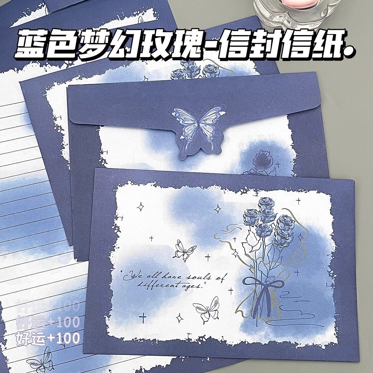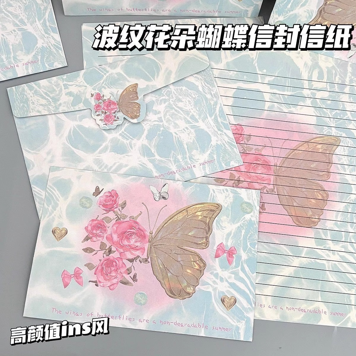 浪漫玫瑰信封信件套装蝴蝶花卉主题信纸信封学生新款浪漫创意贺卡