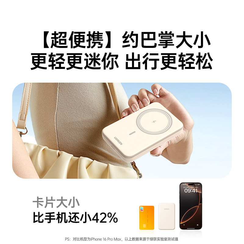 【充电宝3C认证可上飞机】绿联2025新款磁吸无线充电宝17适用苹果16专用快充10000毫安超薄便携移动电源官方