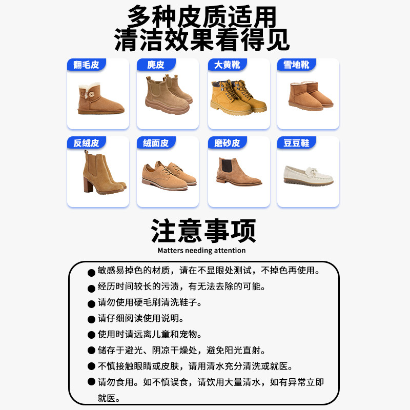 翻毛皮鞋清洁护理剂皮清洗麂皮勃肯鞋雪地靴翻新补色洗反绒皮专用