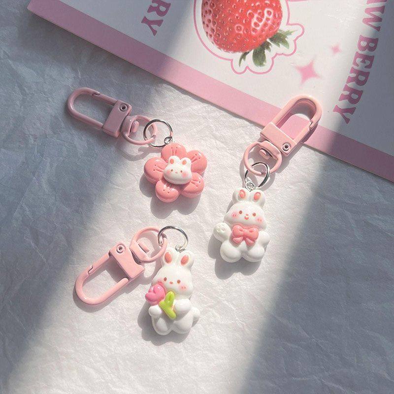 可爱花系郁金香萝卜兔子钥匙扣~ins少女闺蜜礼物书包卡通挂件配饰