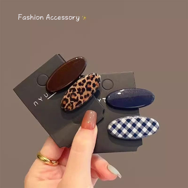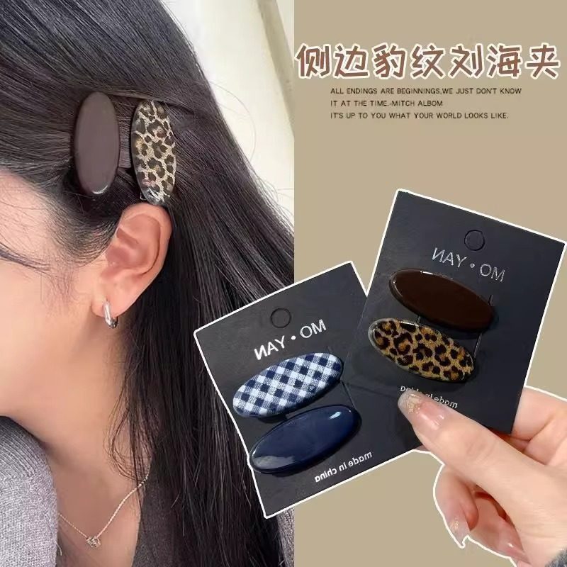 侧边夹气质格纹刘海夹发饰藏蓝豹纹韩版头饰发夹鸭嘴夹女碎发发卡