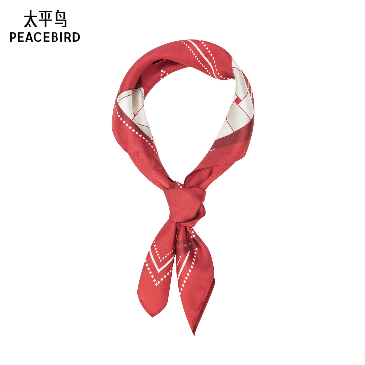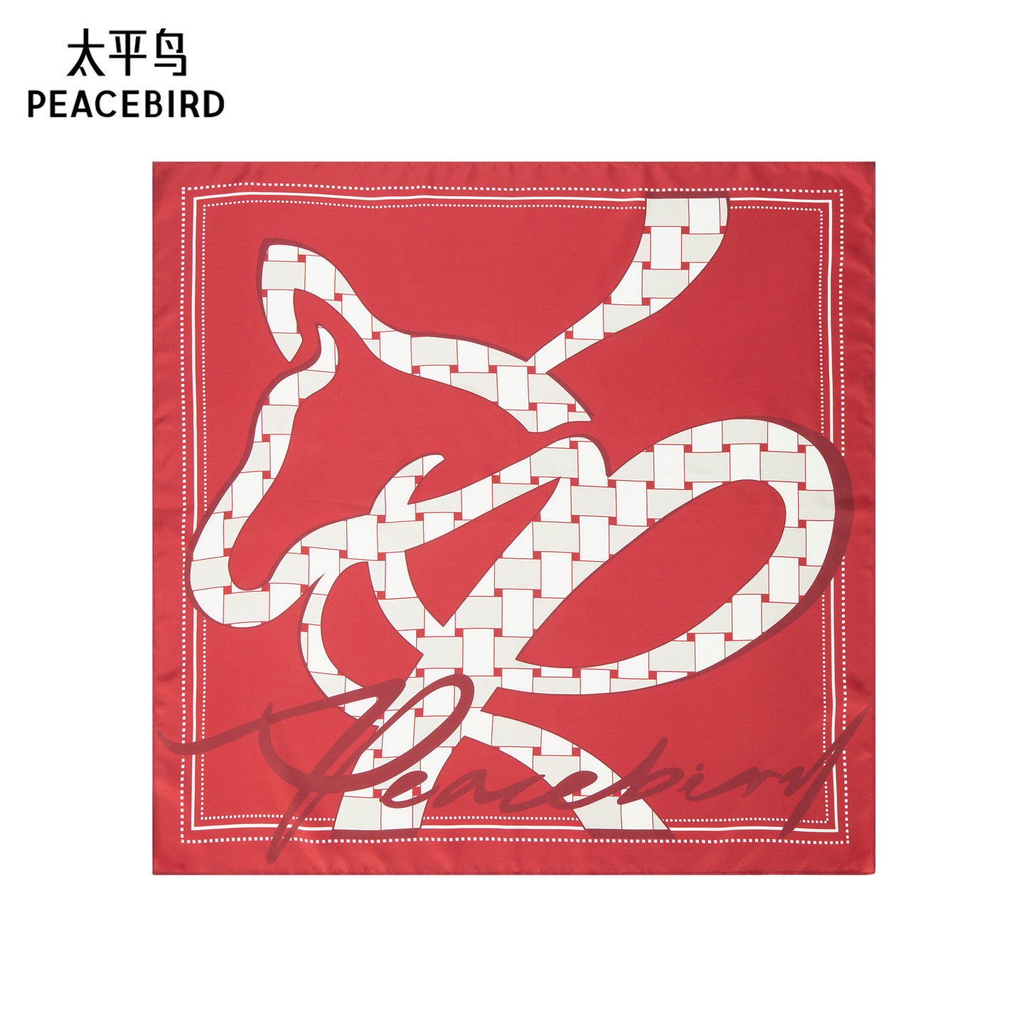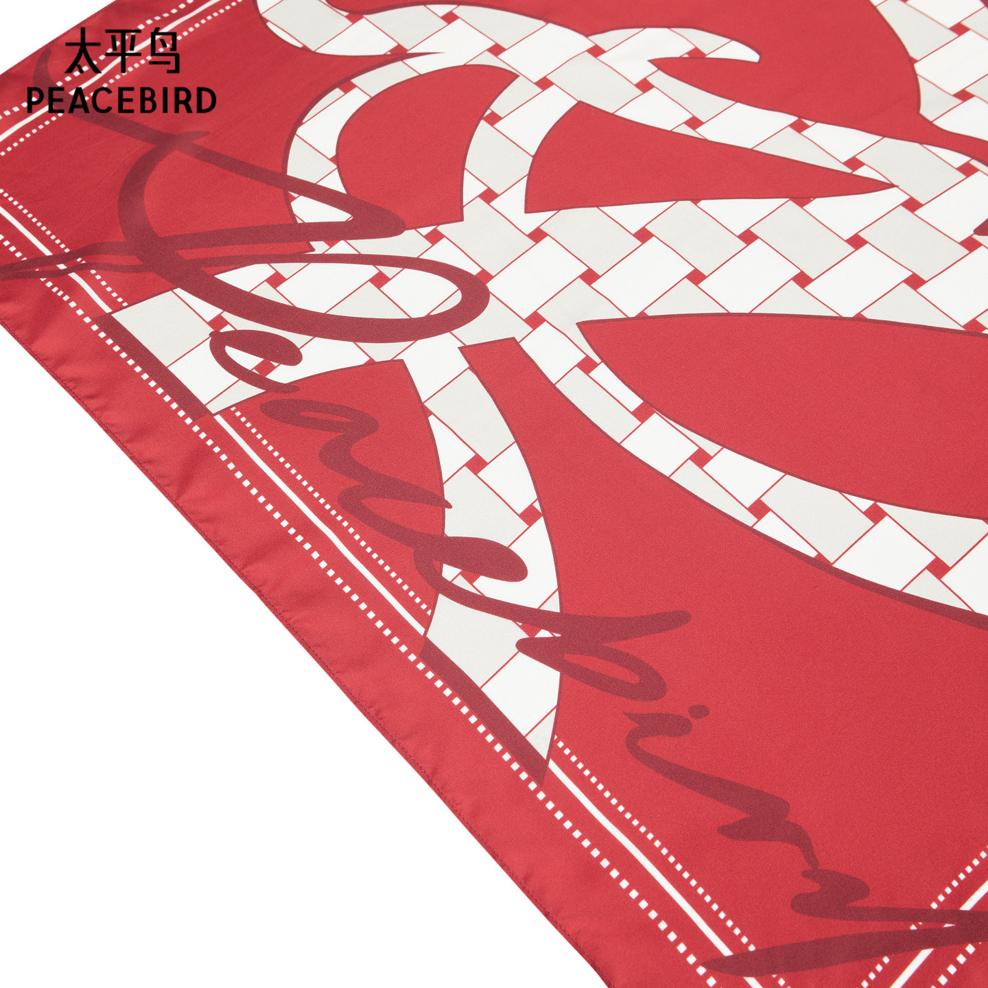 【商场同款】太平鸟红色时尚桑蚕丝真丝通勤丝巾女新款A1YBG1206