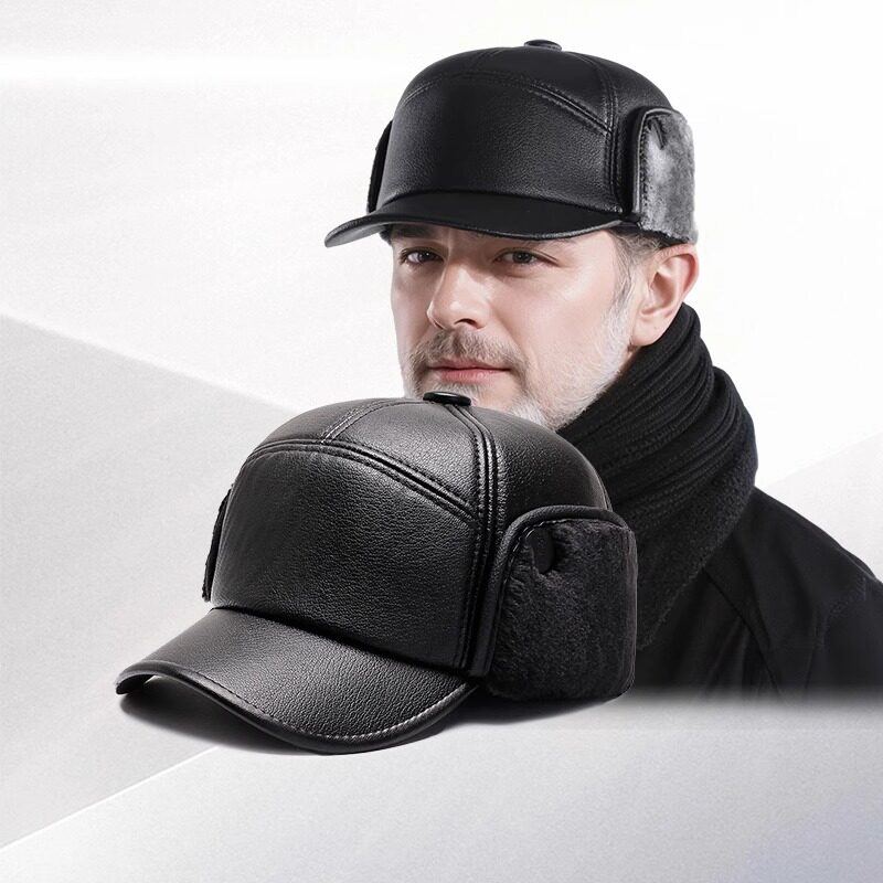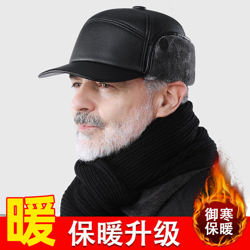 中老年人帽子男士秋冬季爸爸保暖皮帽加绒加厚防风老头护耳鸭舌帽
