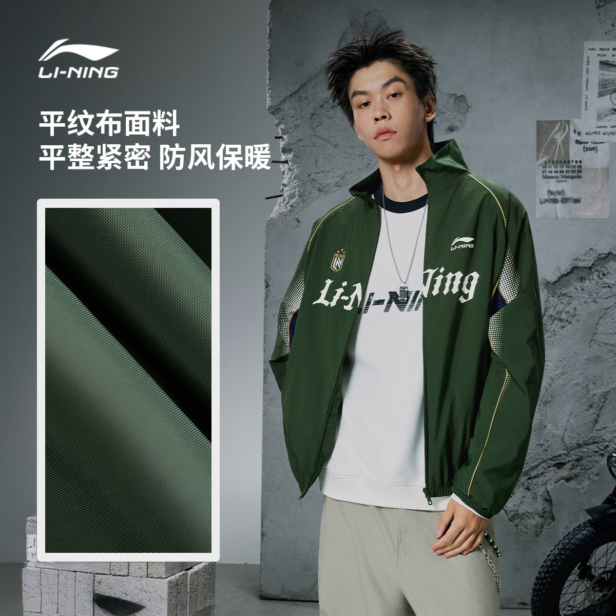 李宁外套男春季情侣立领美式球迷复古上衣休闲宽松夹克运动风衣女