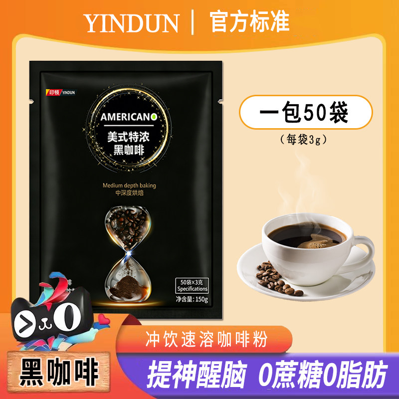 50小包美式特浓黑咖啡速溶冰美式拿铁纯咖啡粉0蔗糖独立包装150克
