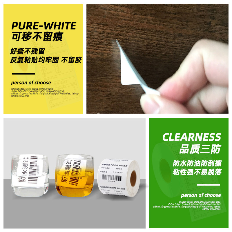 普罗朗不留胶可移除三防热敏标签纸不干胶合成纸60*40 50 70 80易撕防水撕不破条码打印纸家具板材玻璃贴纸