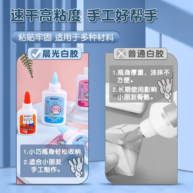 晨光白胶白乳胶儿童做手工用安全无毒速干胶水高黏度可水洗diy模型胶粘纤维幼儿园手工课专用强力粘液体胶