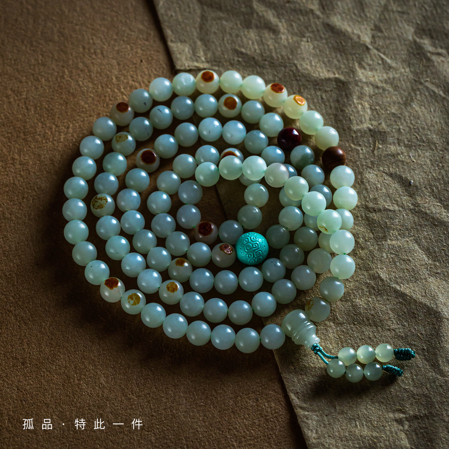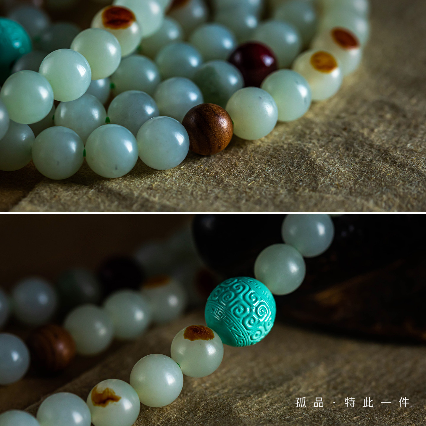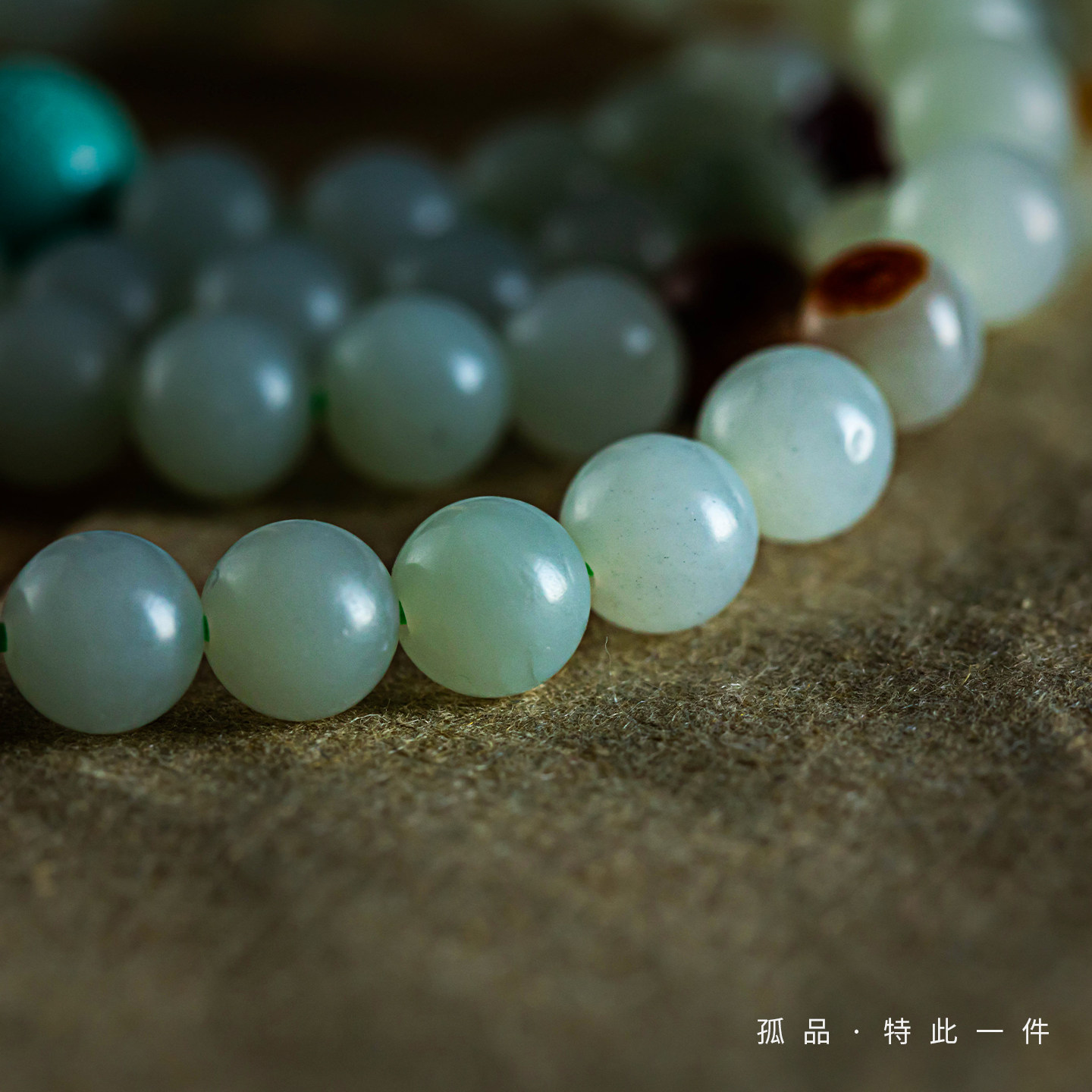【孤品-知意】老料和田玉石念珠手链小众叠戴多圈手串 一物一图