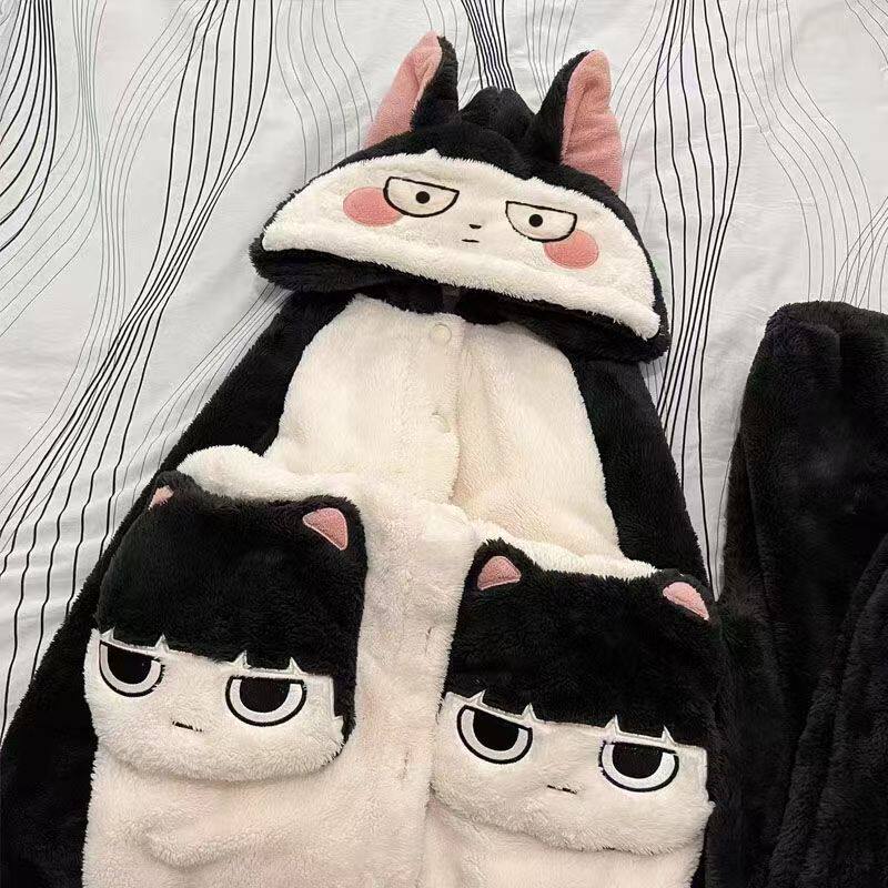 肖战同款猫人暖绒绒家居服半边绒男女2025新款冬季睡衣可外穿加厚