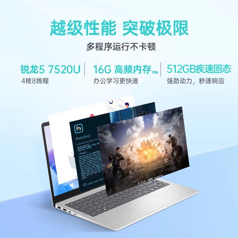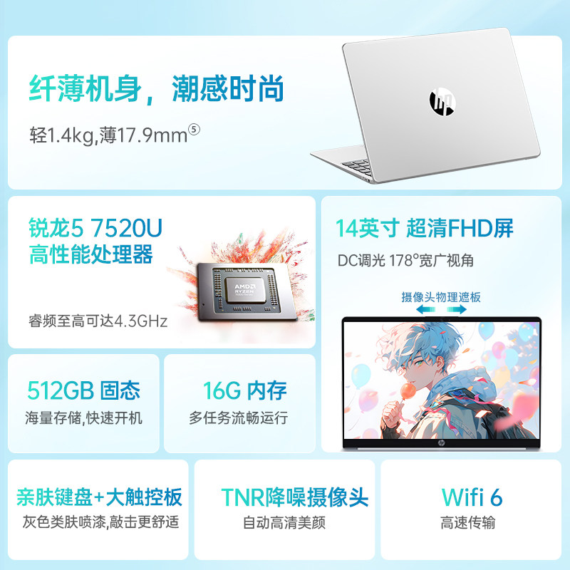 【店长推荐】HP/惠普可选星book 14 锐龙 5 7520U处理器笔记本电脑学生轻薄便携办公本电脑惠普官方旗舰店