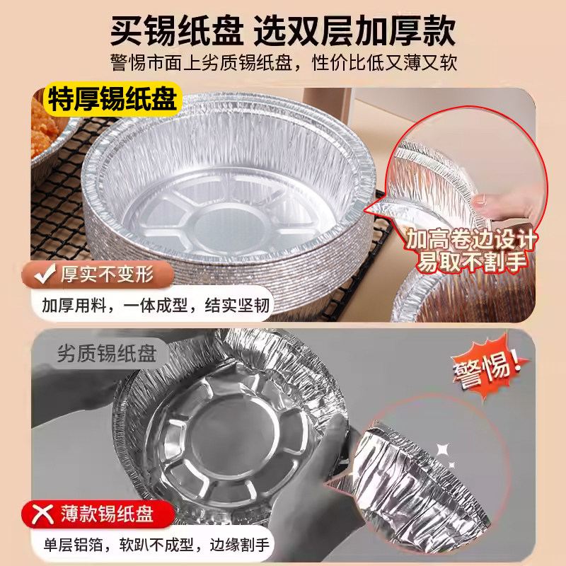 空气炸锅专用加厚锡纸盘盒烧烤箱烘焙锡箔碗家用锡纸盒食品级圆形