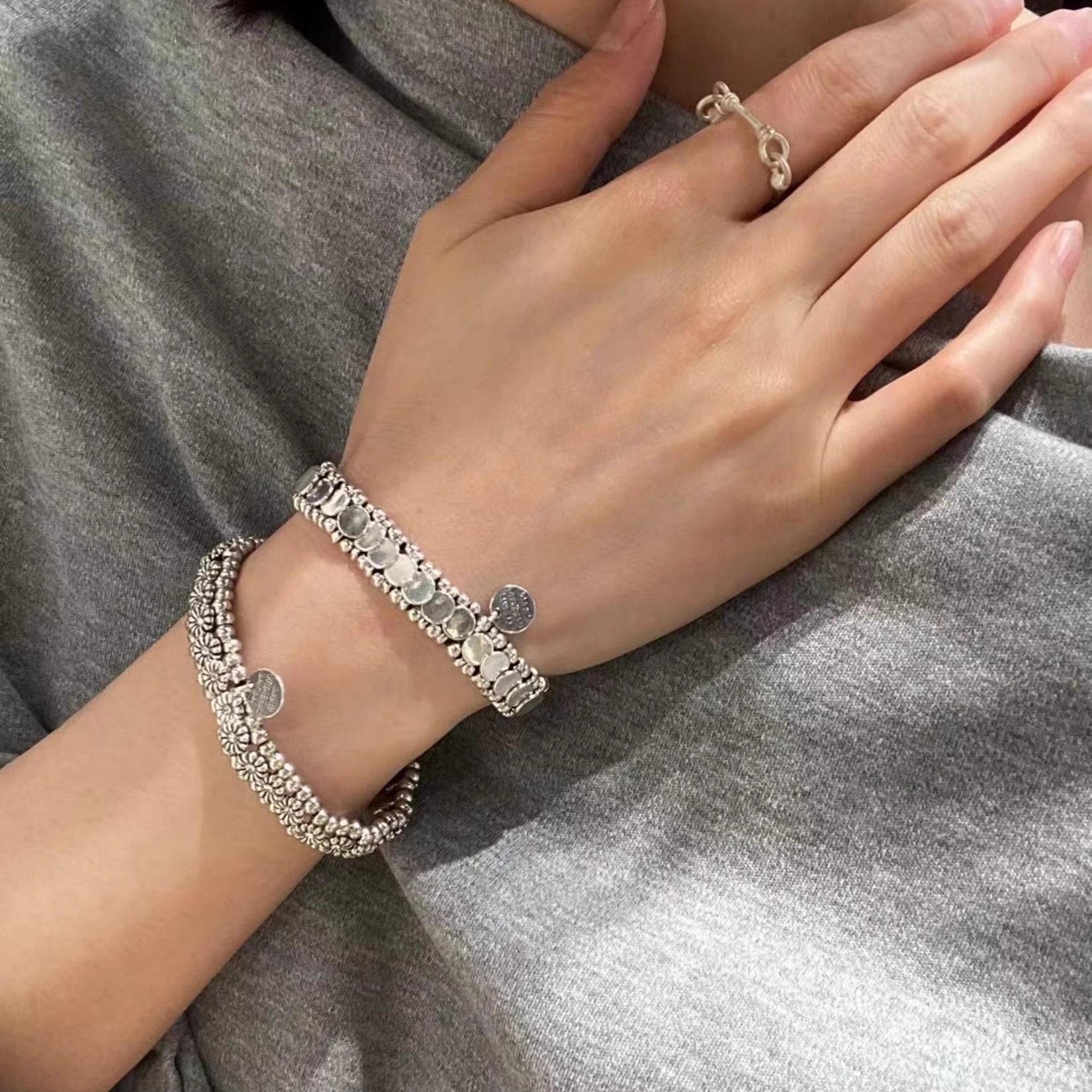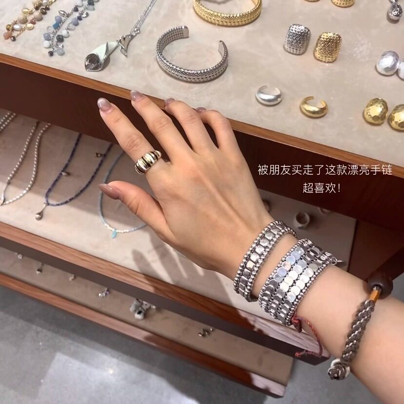 周大生碎冰冰五帝钱手链S925纯银女轻奢小众碎银子生日礼物送女友