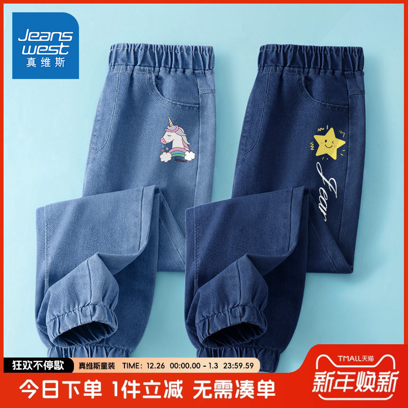 真维斯童装女童裤子春秋款儿童秋季薄款牛仔裤小女孩休闲时髦秋装