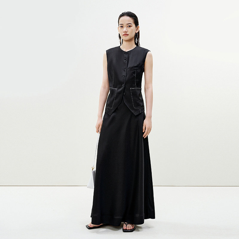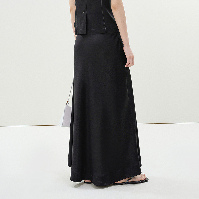 LESS夏季通勤A字半身裙气质优雅环保醋纤系带垂感半裙2P5D11720