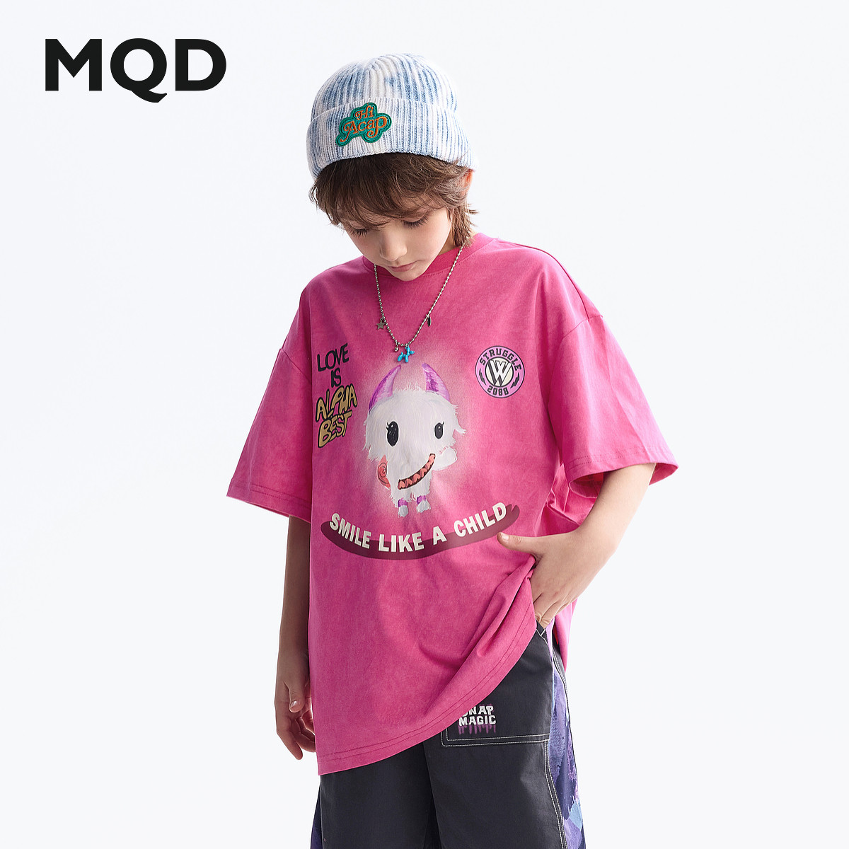 MQD童装男女童短袖2025夏季新款圆领t恤儿童潮酷上衣宝宝打底衫